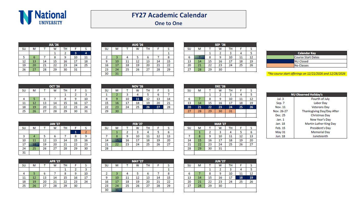 Academic Calendar National University Modern Campus Catalog™