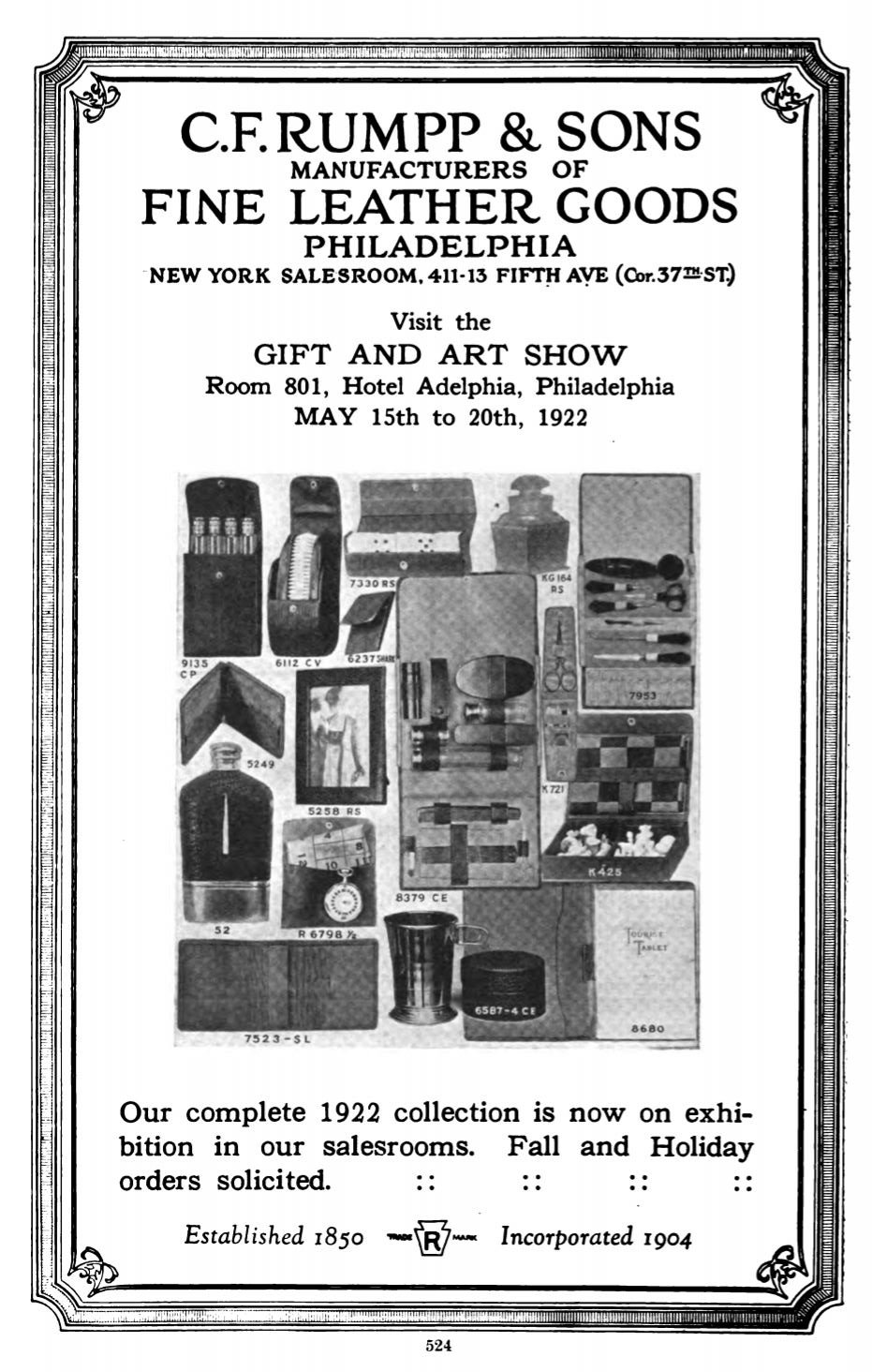 C F Rumpp & Sons Ad 1929 Philadelphia PA Gifts of the Finest Leather eBay