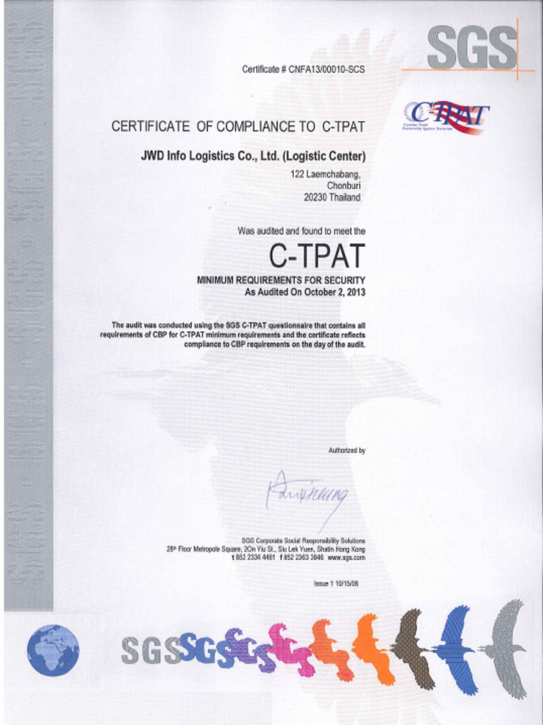 CTPAT Certification BDG International India Pvt Ltd