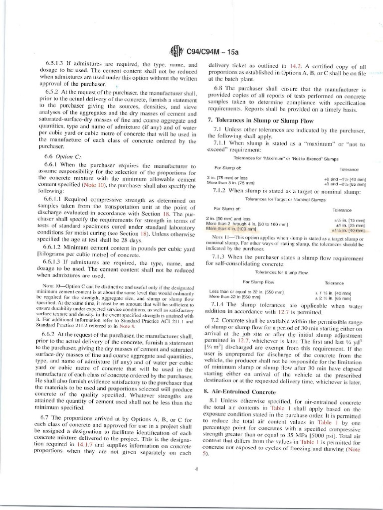 ASTM C94 Slump Tolerance PDF