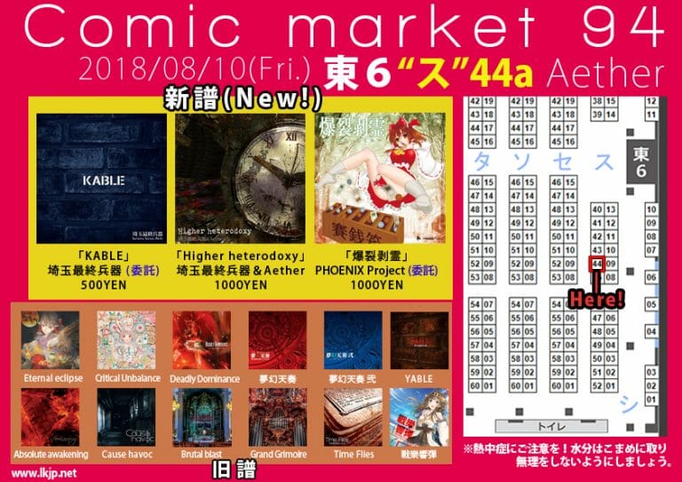 ![新譜情報「Higher heterodoxy」公開![C94金東ス44a Aether] Aether](https://www.lkjp.net/wordpress/wp-content/uploads/2018/07/C94_catalog-768x543.jpg)