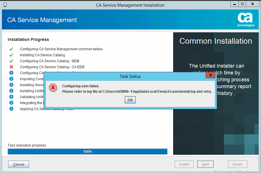 CA Service Management Installation (migration) Error (CA EEM / USS