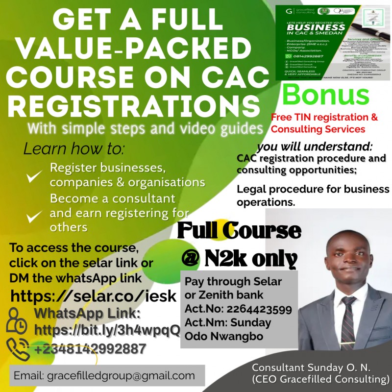Buy CAC REGISTRATION COURSE by Olayinka Awoyemi on Selar