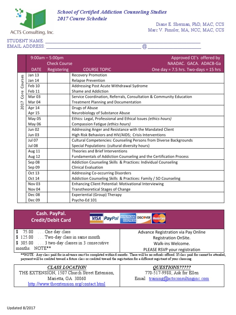2017 CAC Course Schedule PDF Substance Dependence Substance Abuse