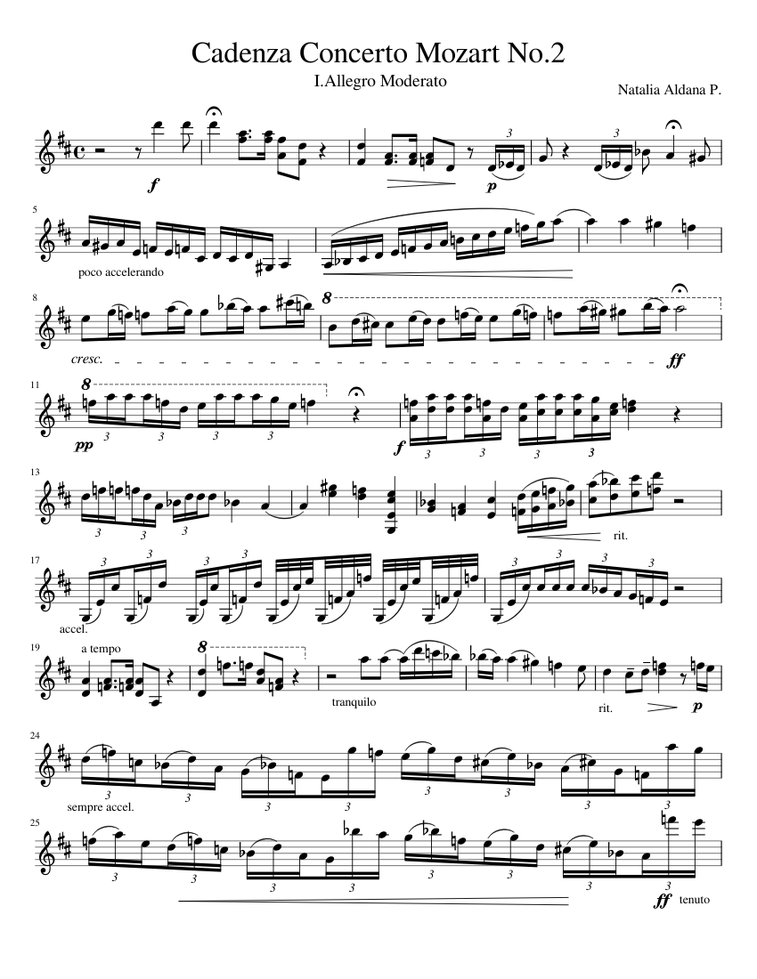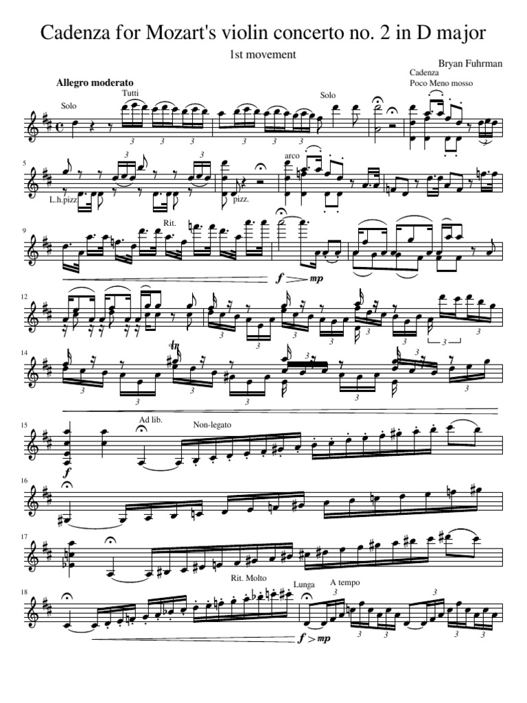 Cadenza For Mozarts Violin Concerto No. 2 in D Major PDF