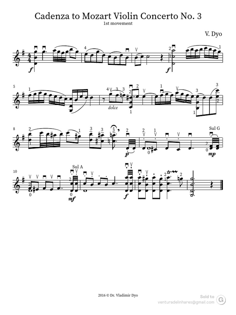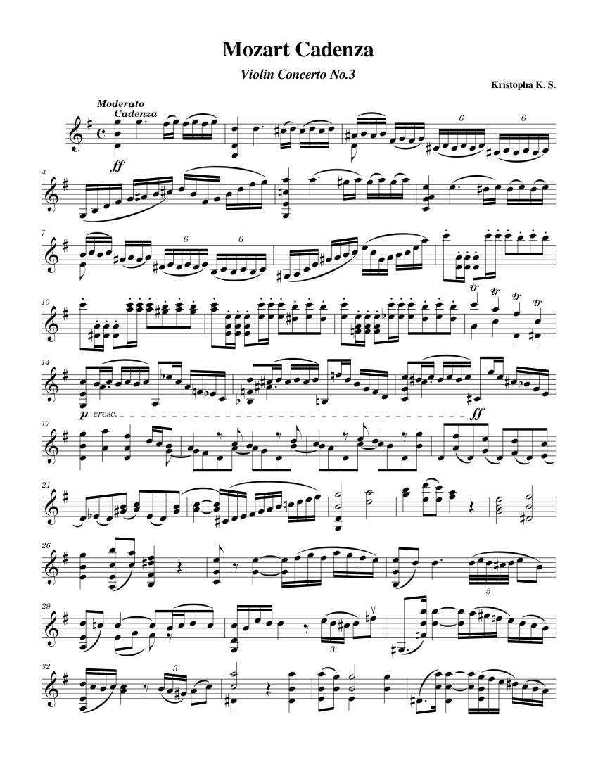 Violin Concerto No.2 in D major, K.211 Allegro moderato Cadenza, Mozart