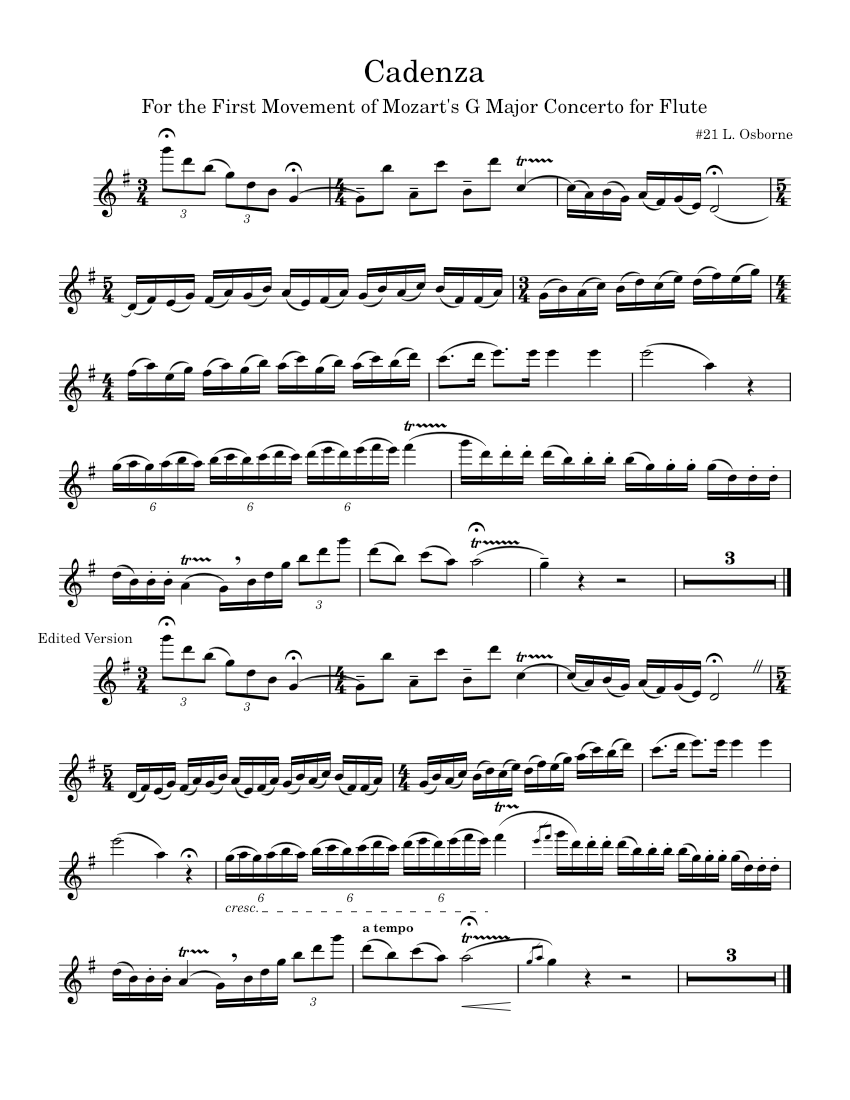 Cadenza for the 1st Movement of Mozart's G Major Concerto for Flute
