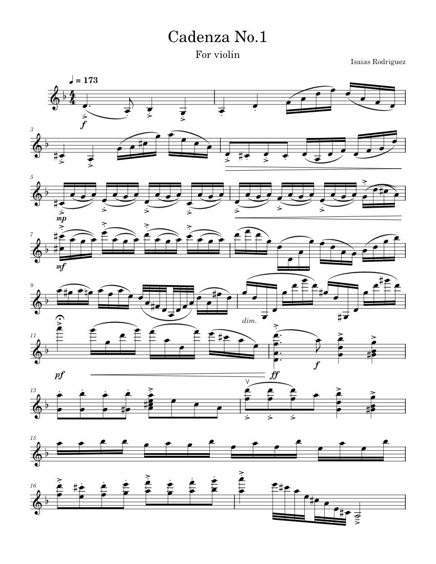 Cadenza for Violin Concerto No.1 in D Major Op.6 Sheet music for Violin