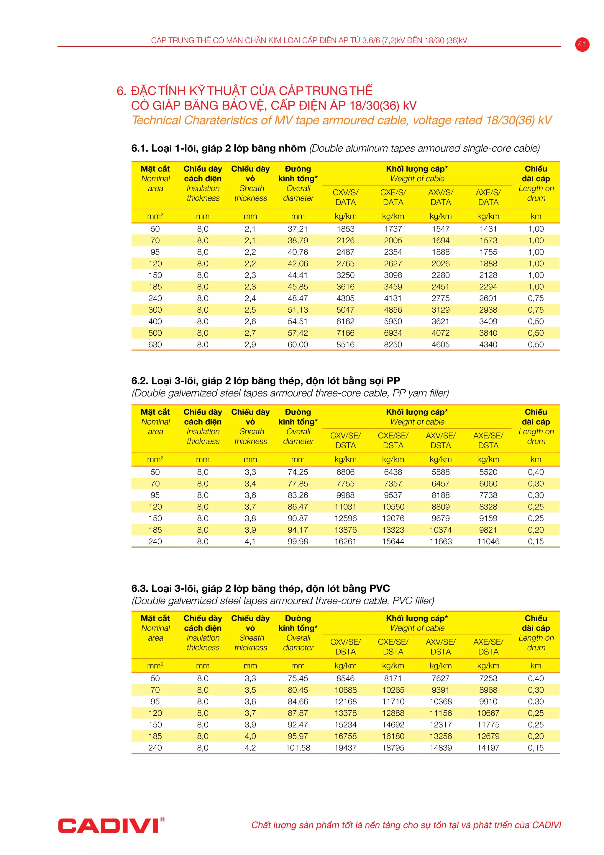 Catalogue và bảng tra tiết diện dây cáp hạ thế Cadivi