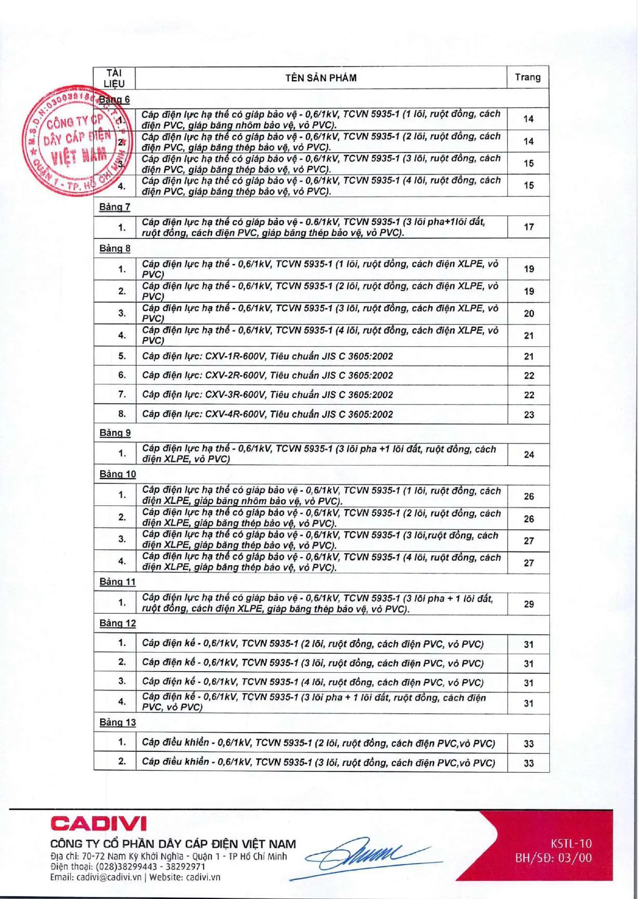 Catalog Dây Và Cáp Điện Cadivi Điện Hạ Thế