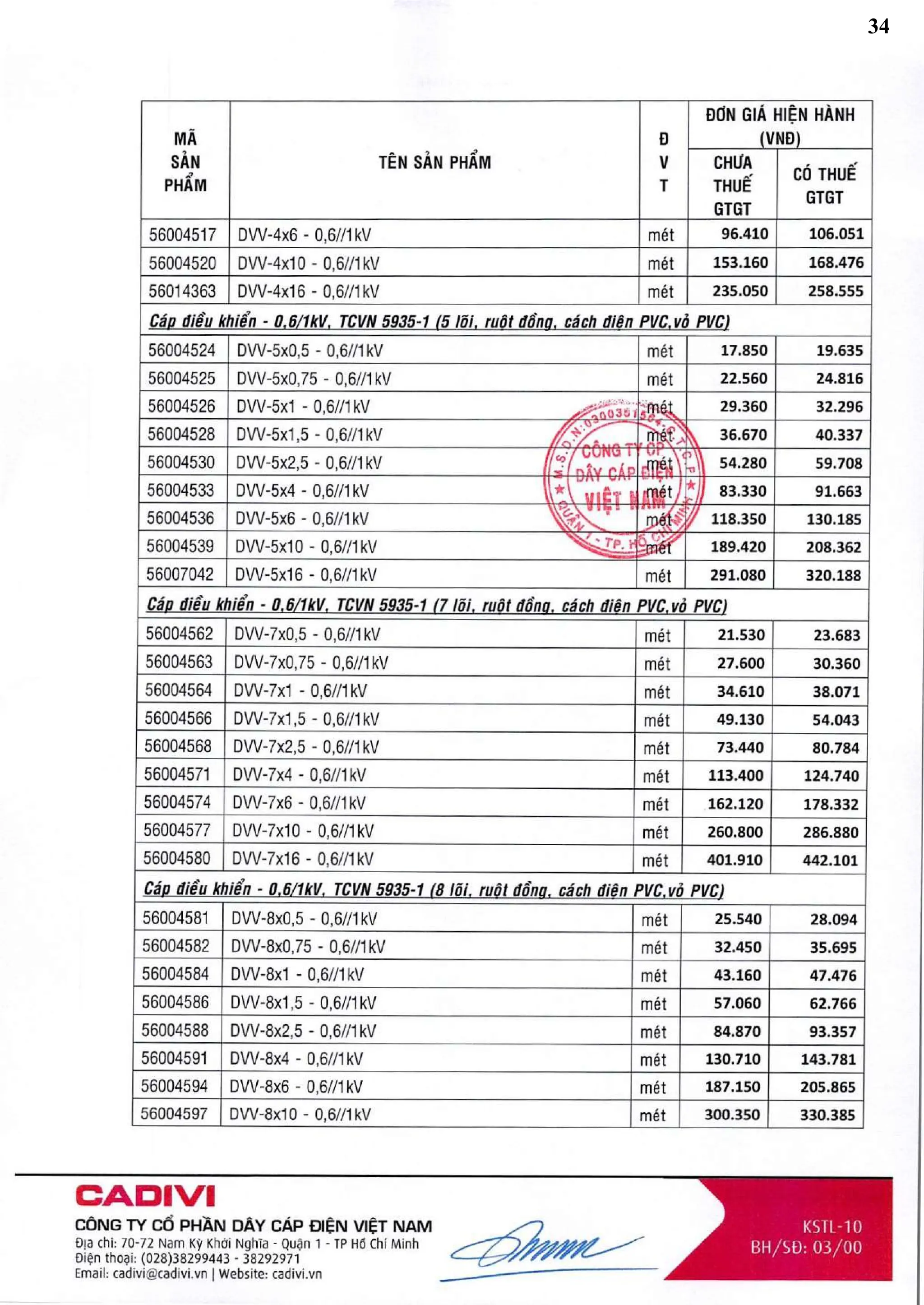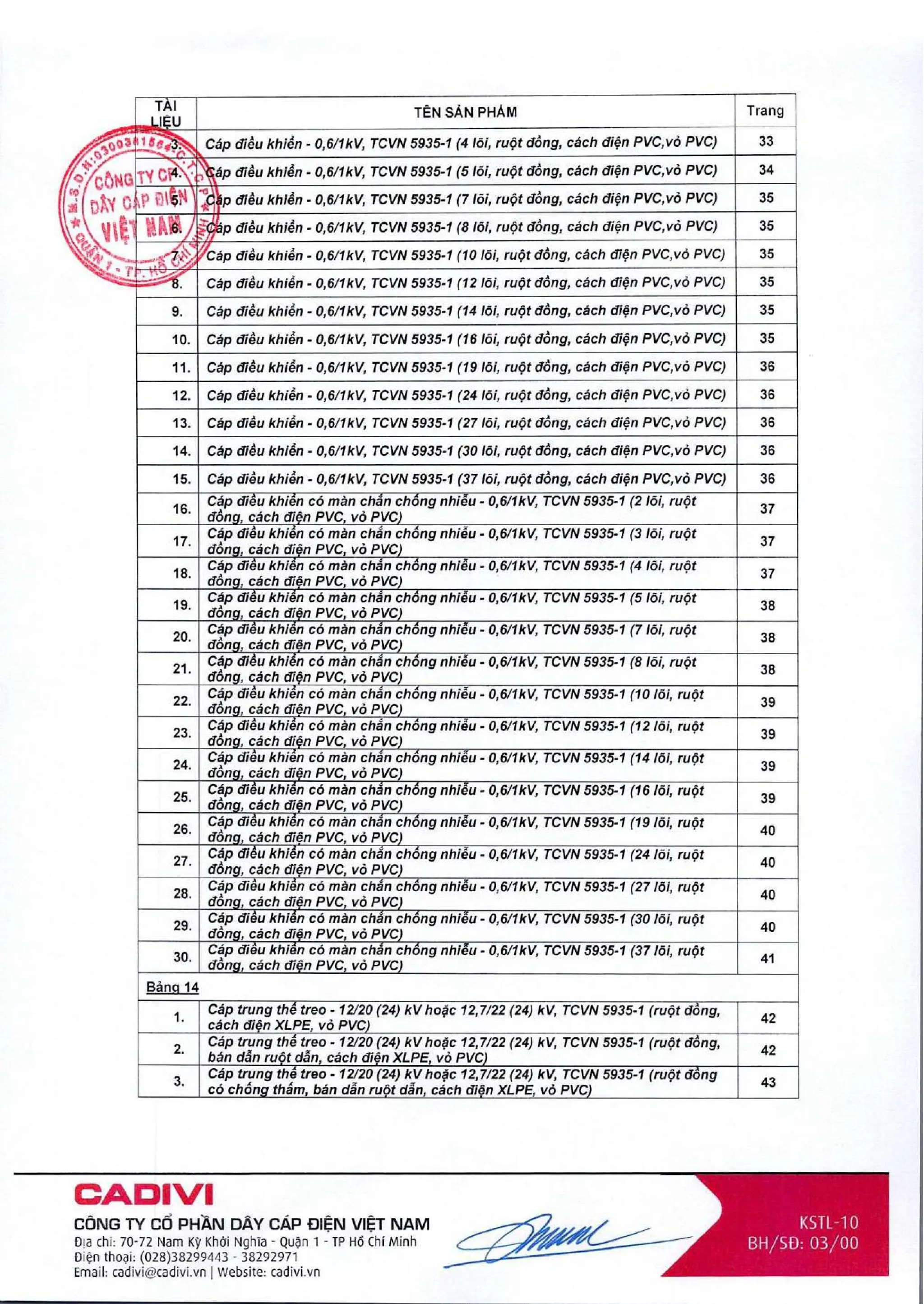 Catalogue Cap Cadivi 2024 Cập Nhật Chi Tiết Mới Nhất