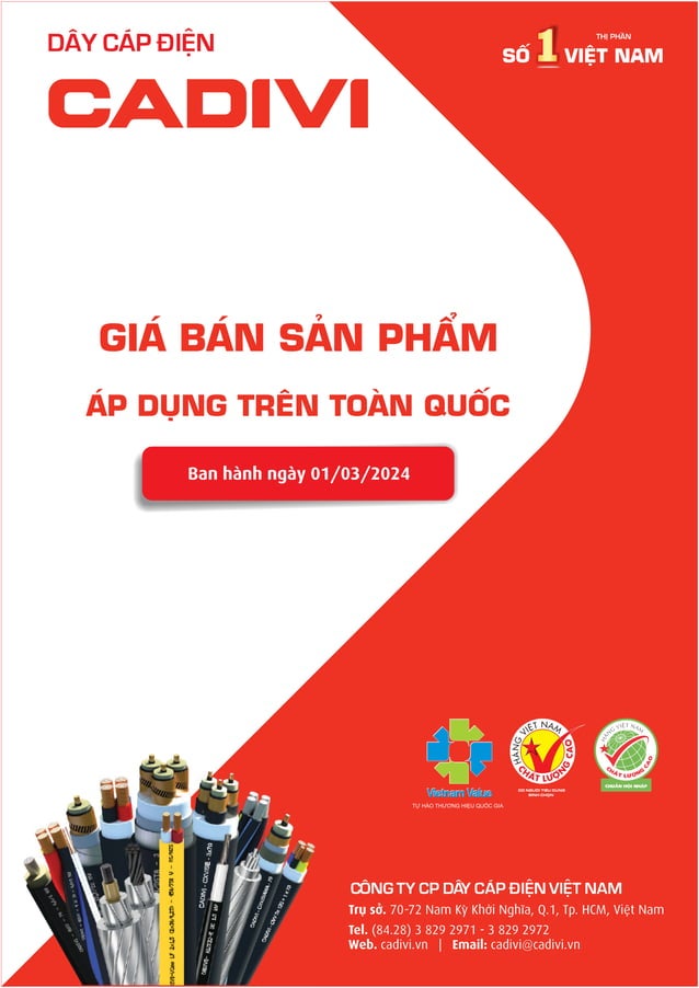 Catalogue Bảng giá Cadivi 2024. Nhà phân phối, đại lý Cadivi