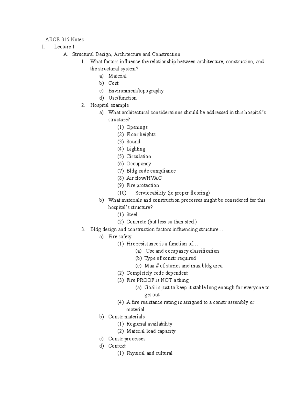 Cal Poly ARCE 315 Intro to Structural Design Notes ARCE 315 Notes I