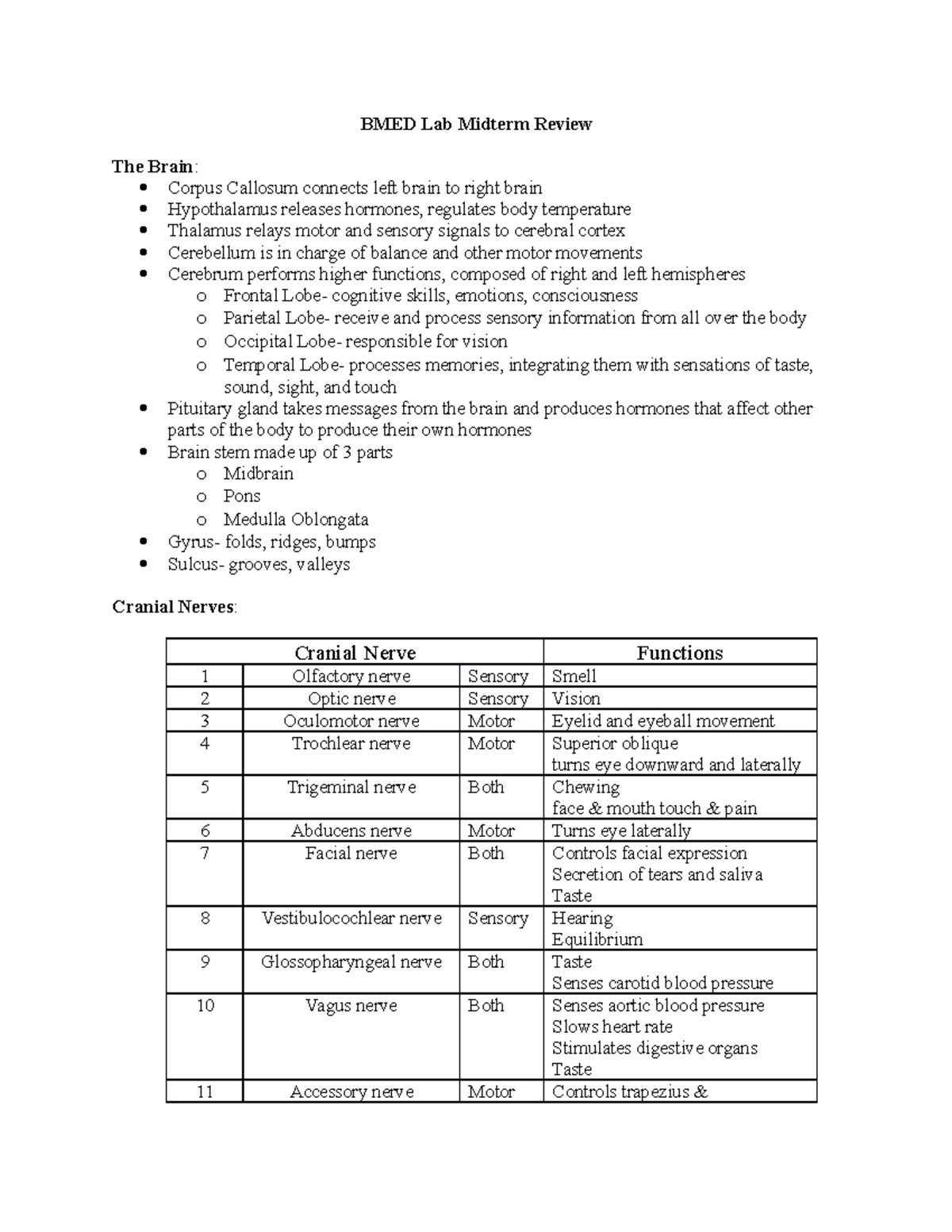 BMED Lab Midterm Review Studocu