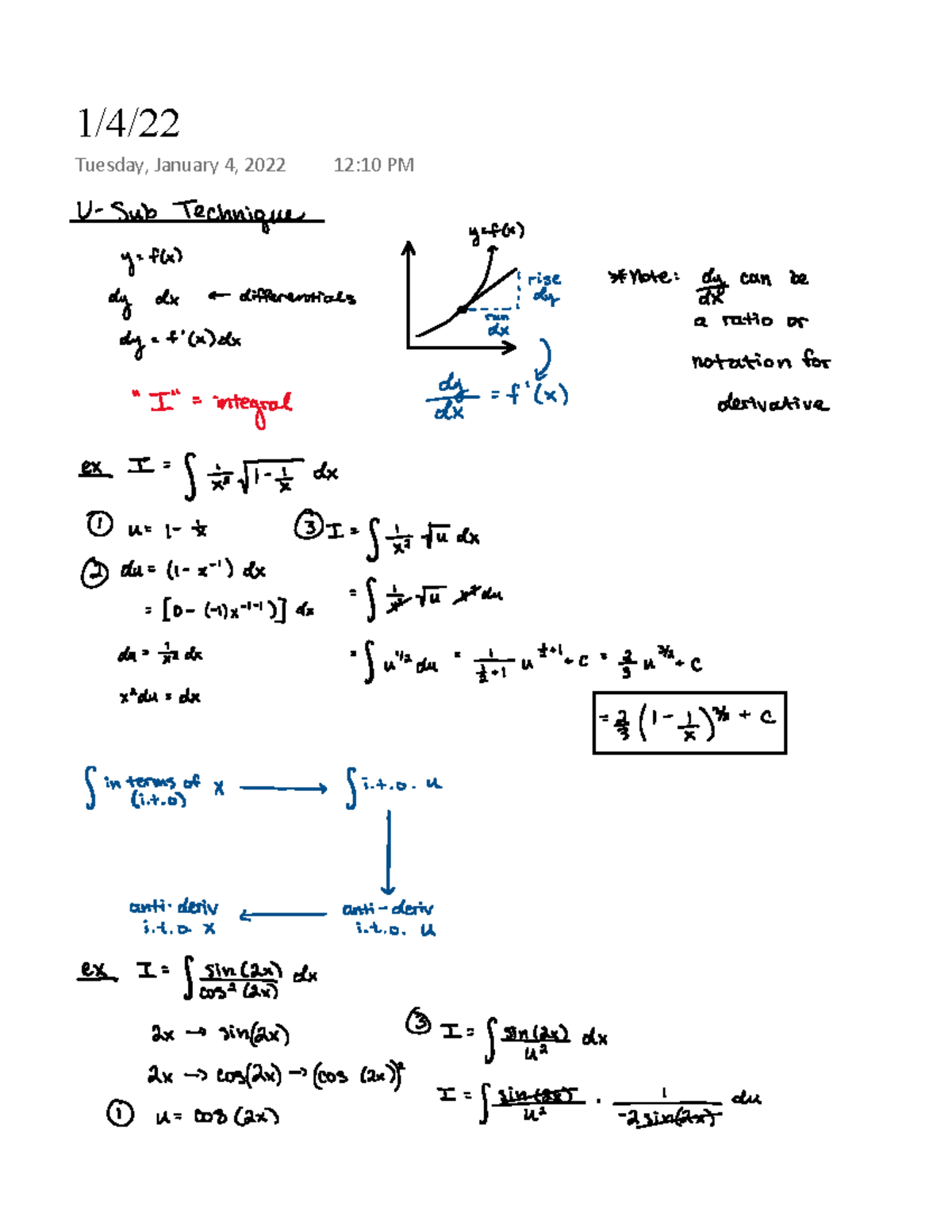 Cal Poly MATH 182 Calculus 2 Notes 1 U Sub Technique, Rule of Thumb