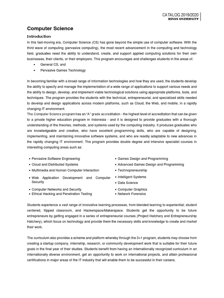 Computer Science CATALOG 2019/2020 Download Free PDF Computing