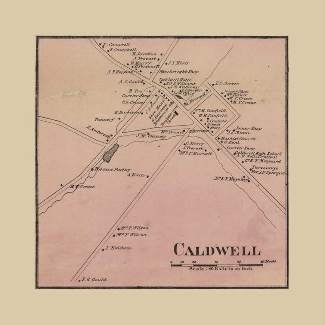 Caldwell Village 1859 Old Town Map With Homeowner Names New Jersey