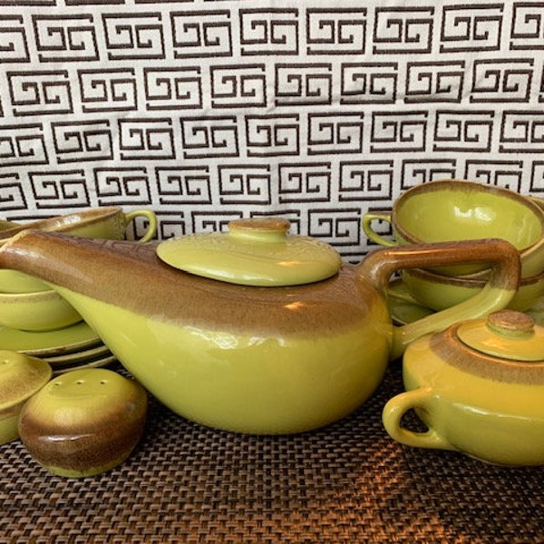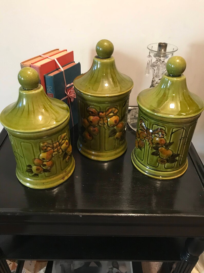 Vintage Los Angeles California Pottery Olive Green Ceramic 3 Piece Set