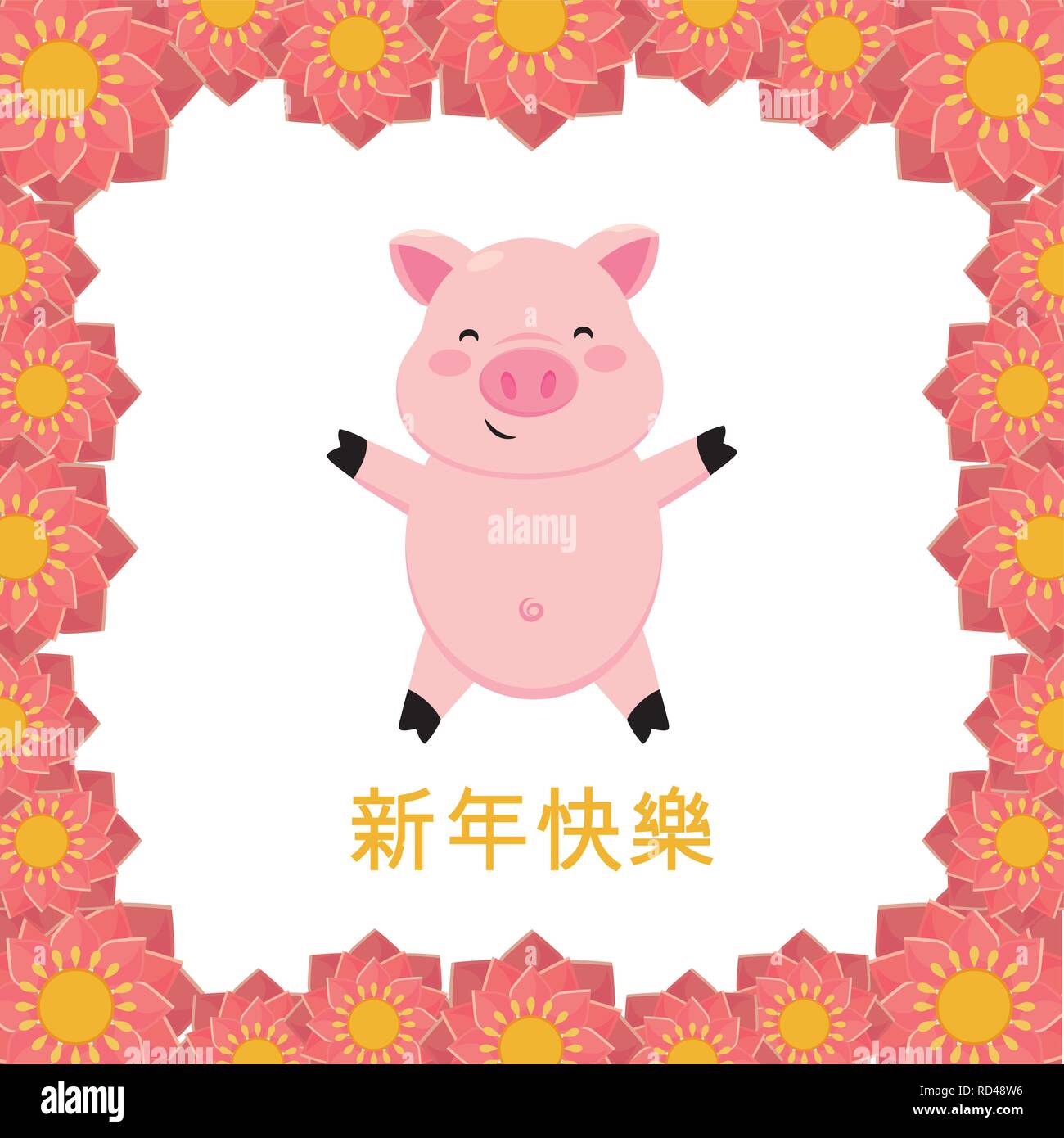 Year of the Pig, Happy Chinese New Year, Pig Illustration Stock Vector