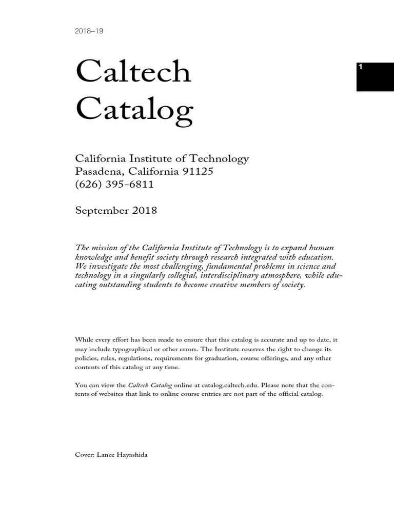 Caltech Catalog 2021 Section 1 PDF California Institute Of