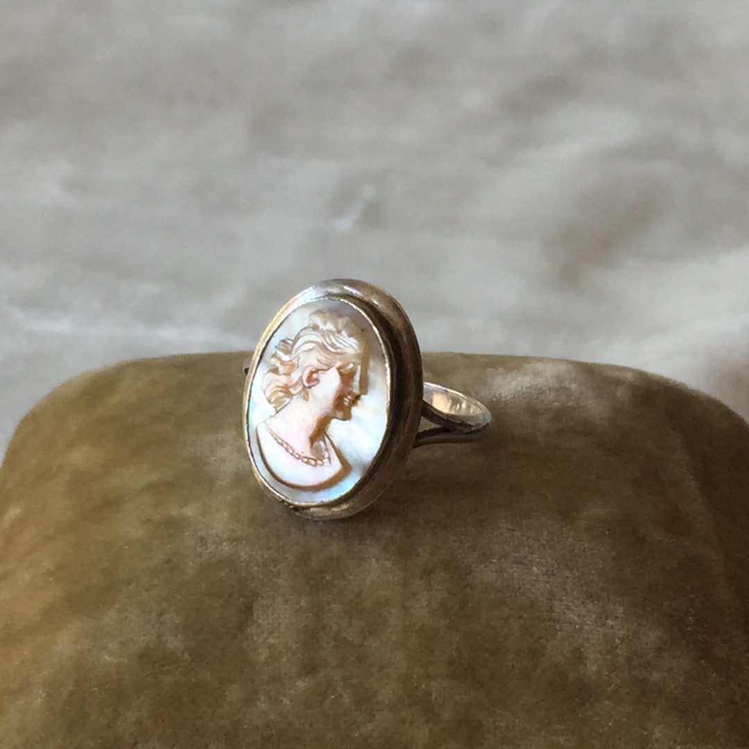 Sterling Silver Mother of Pearl Cameo Ring Etsy
