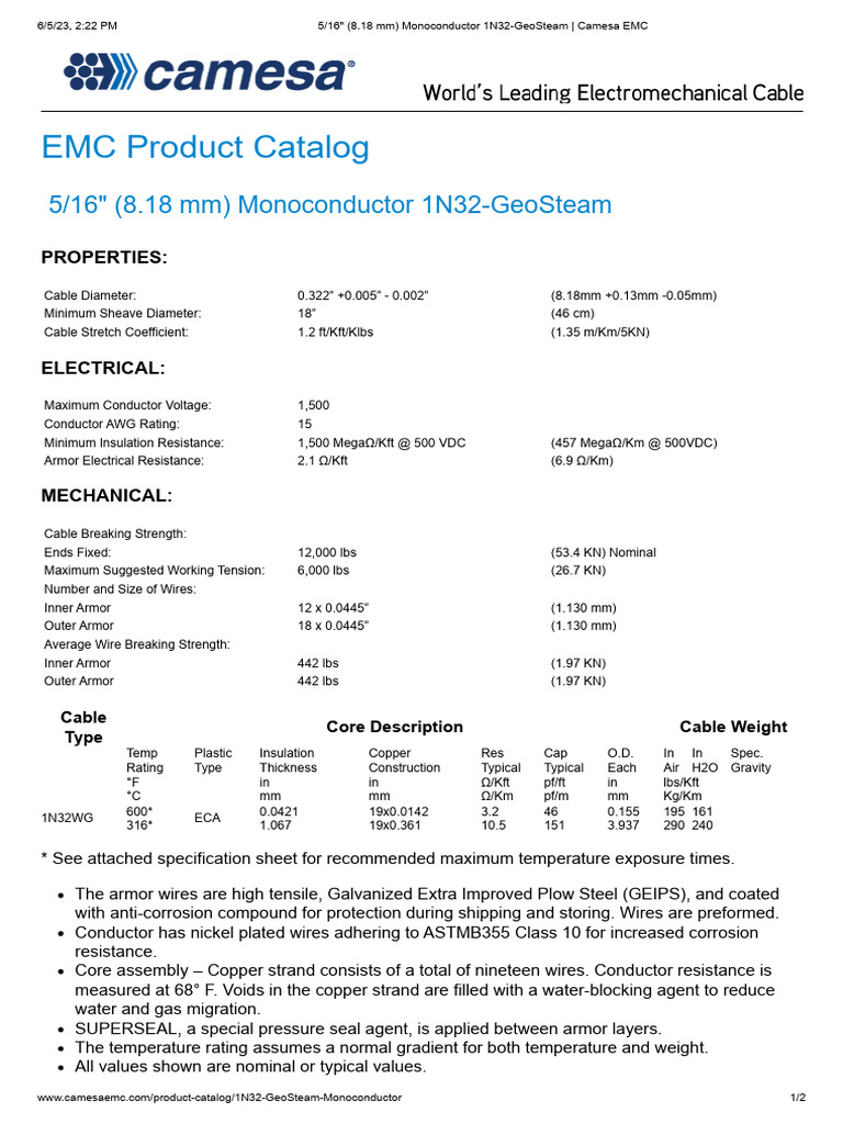 5 16 (8.18 MM) Monoconductor 1N32GeoSteam Camesa EMC PDF