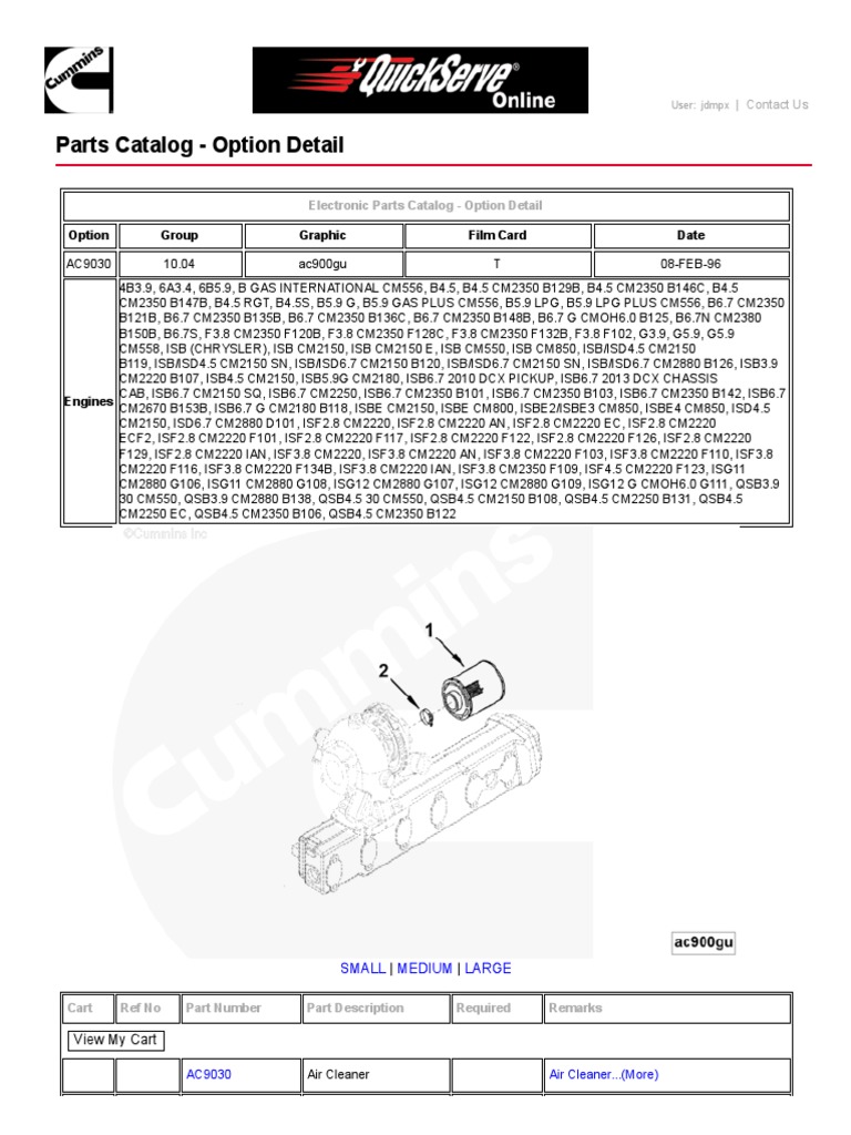 Cammins Parts Catalog Option Detail