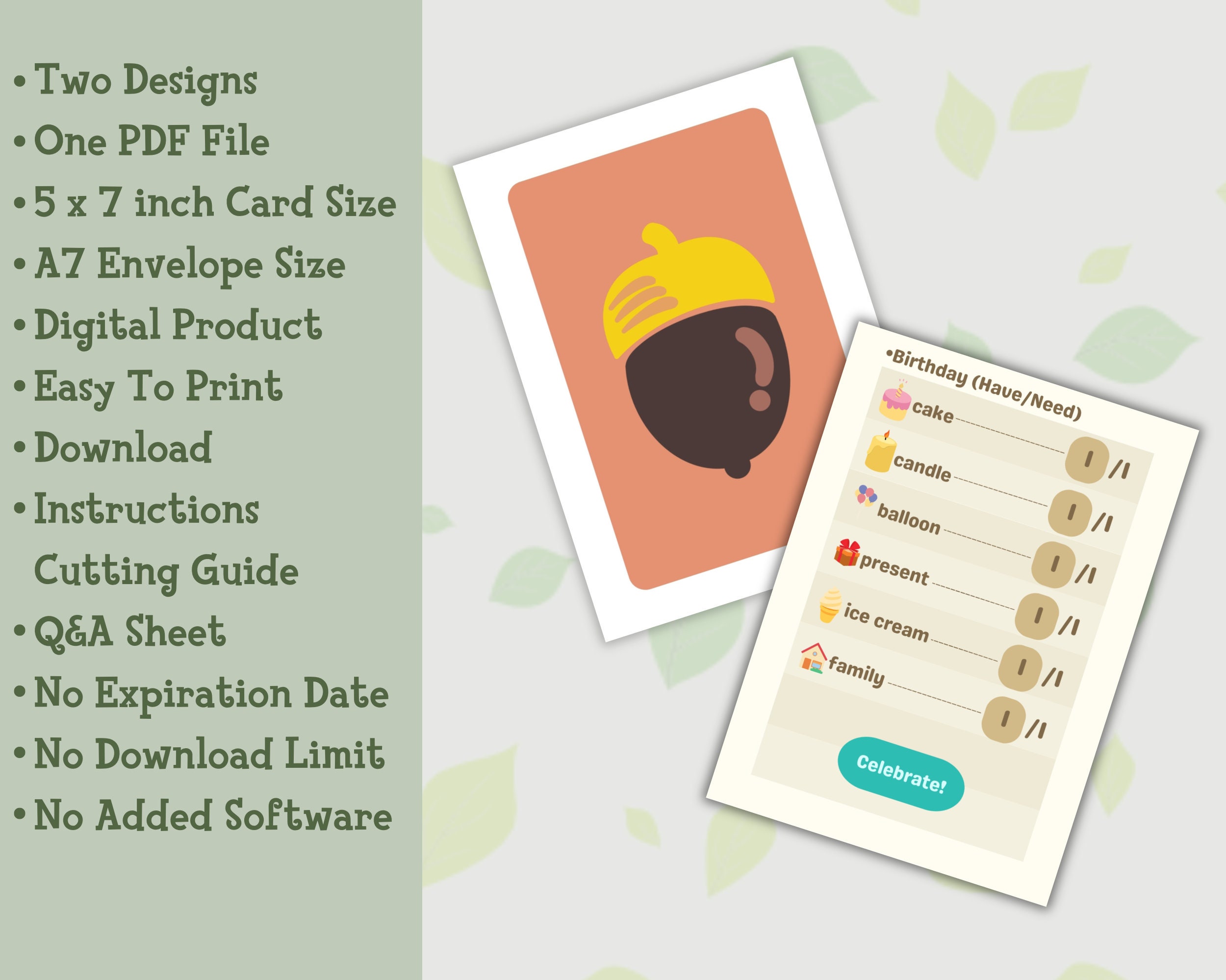 Printable Animal Crossing New Horizon DIY Recipe Birthday/greeting