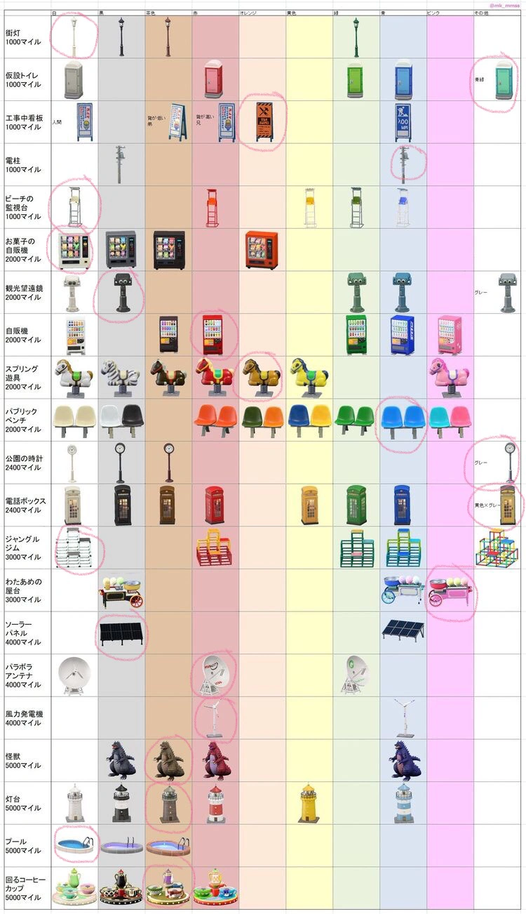 Nook Miles Outdoor Furniture Rewards Every Item & Color Variant in