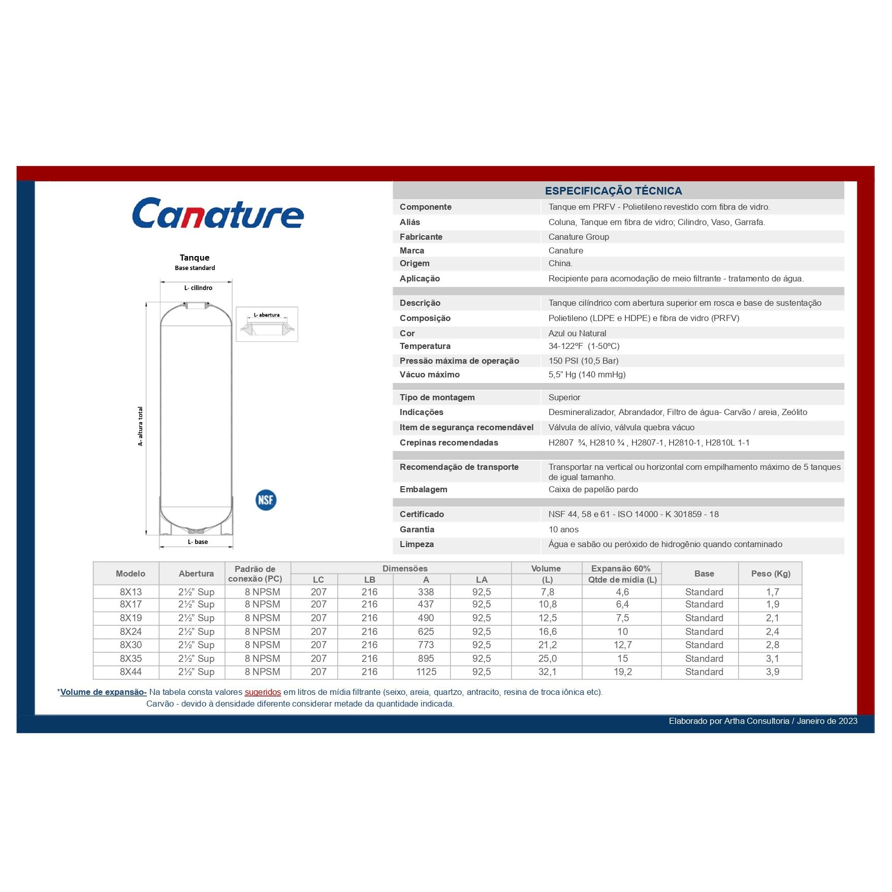 Tanque em PRFV 8X24 Natural, Diam. 08 e 24 Canature Canature