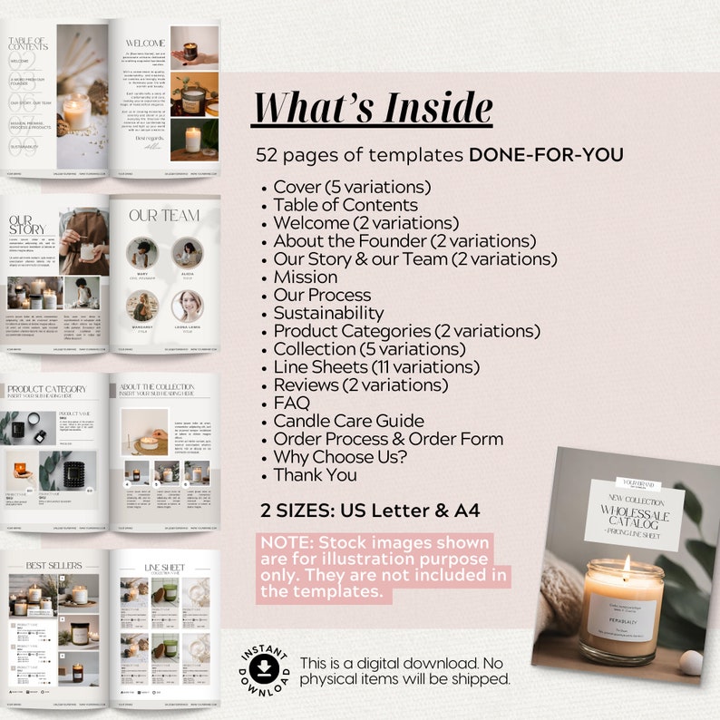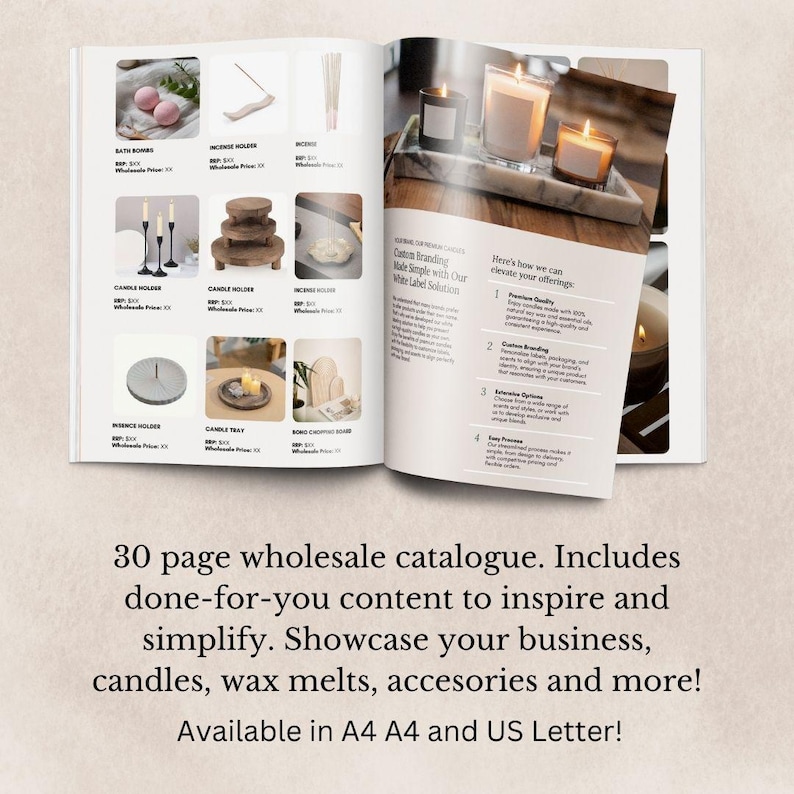 Wholesale Line Sheet, Editable Candle Catalogue Template, Candle Seller