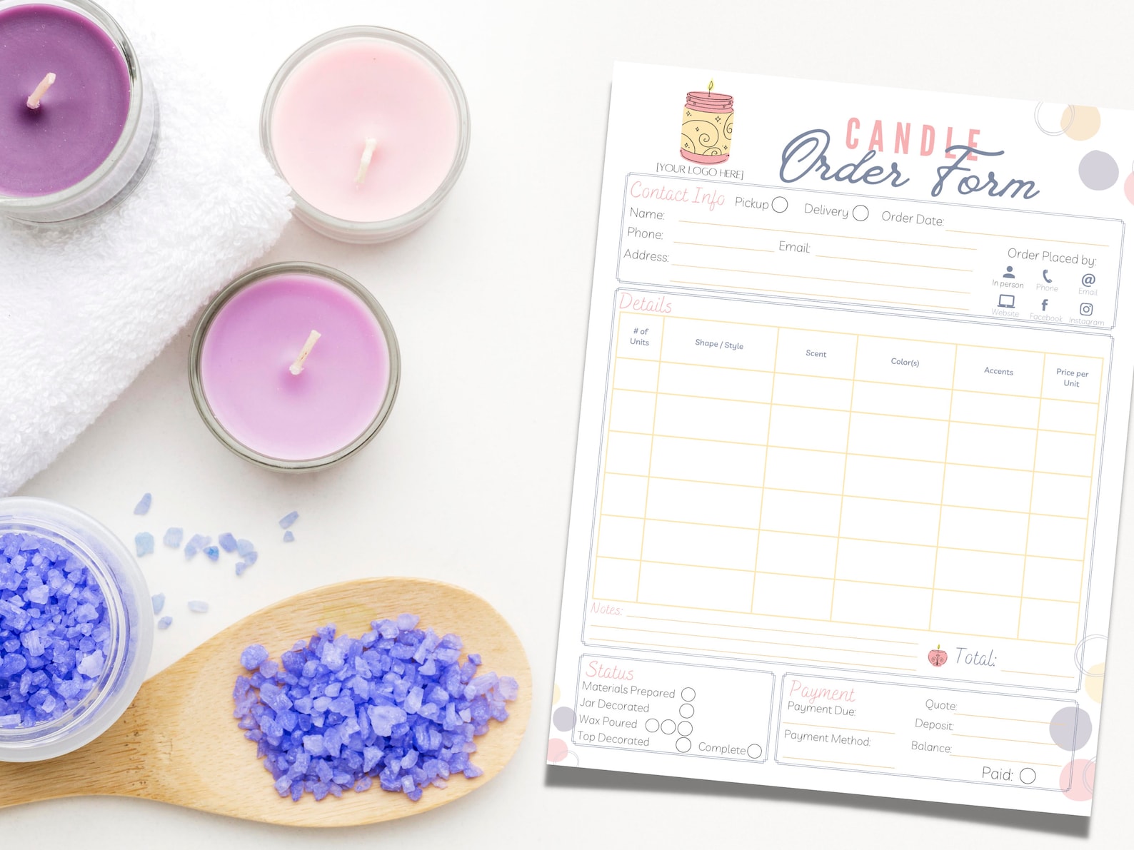 Candle Order Forms, Candle Design Template, Candle Craft Fair, Candle