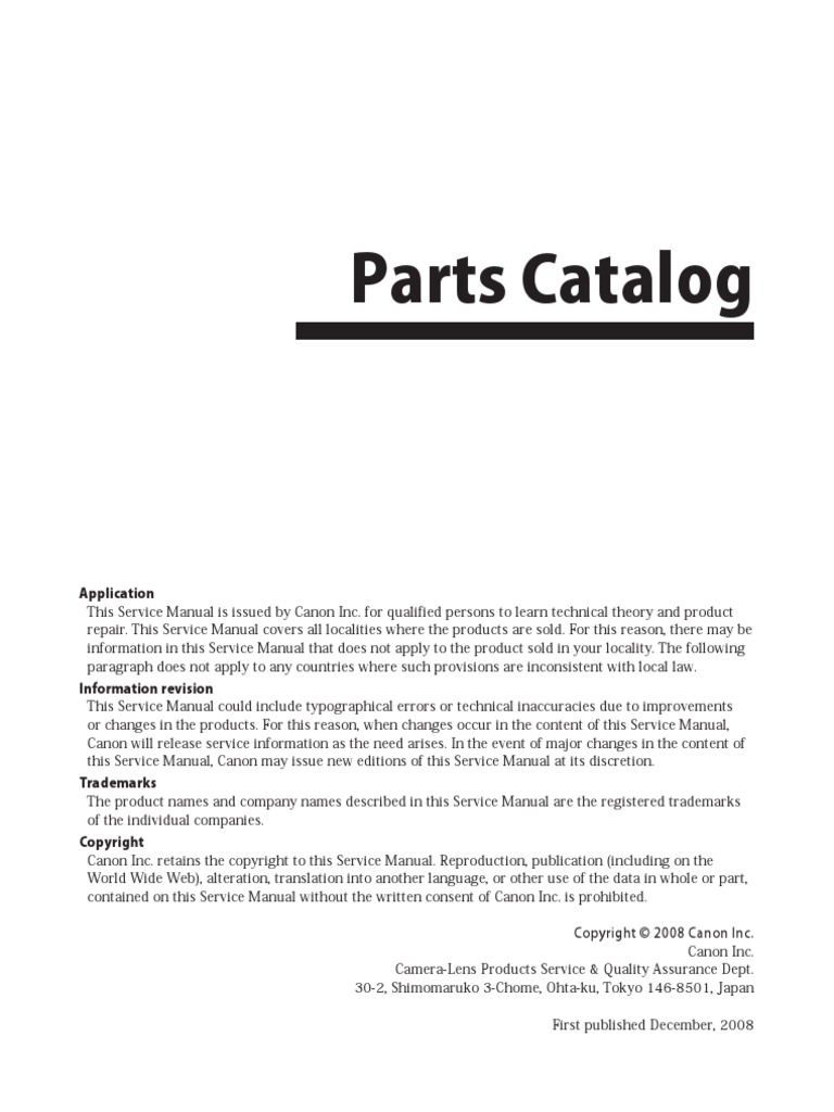 Canon 5d Mark II Parts Lists and Schematics PDF Copyright Trademark