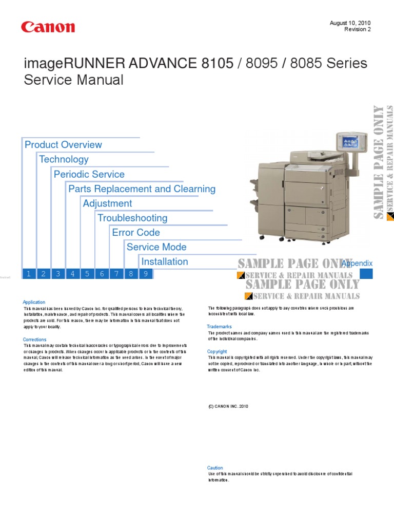 Canon imageRUNNER ADVANCE 8085/8095/8105Pro Service Manual