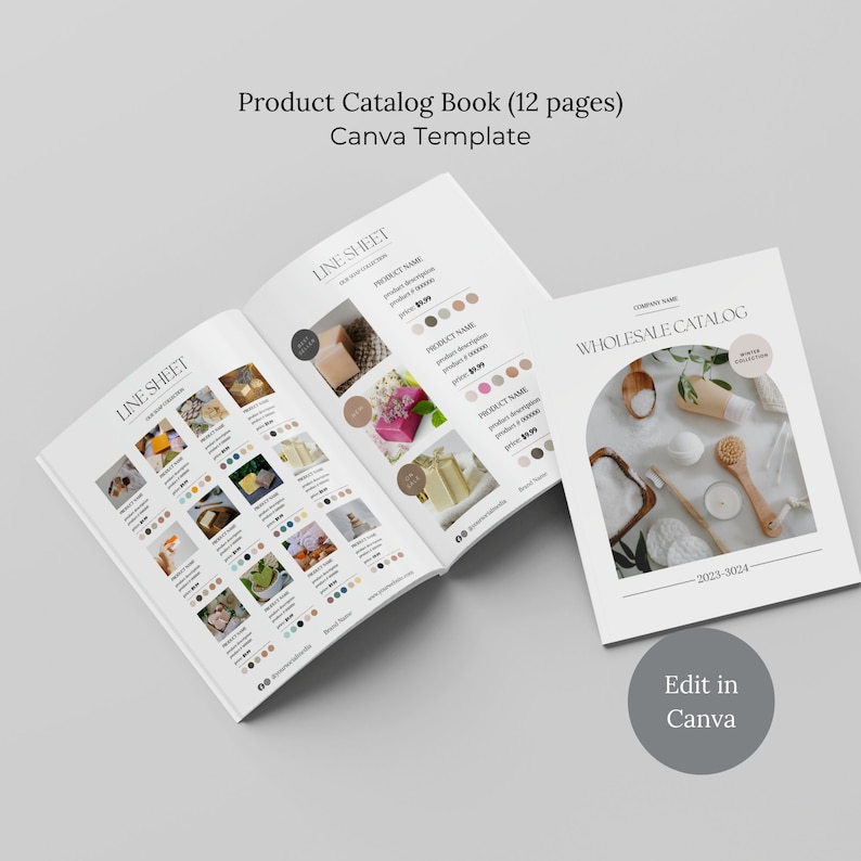 Product Catalog Template Canva, Editable Wholesale Line Sheet Template