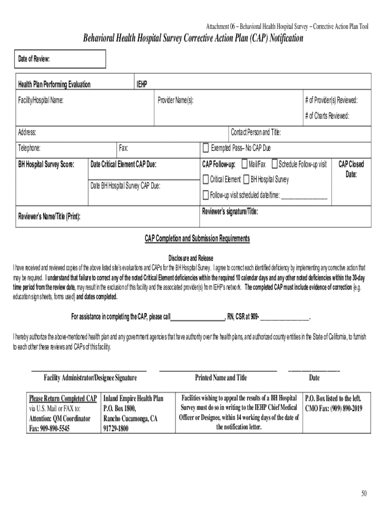 Fillable Online Guidance for Corrective Action (CAP) Surveys with a 6