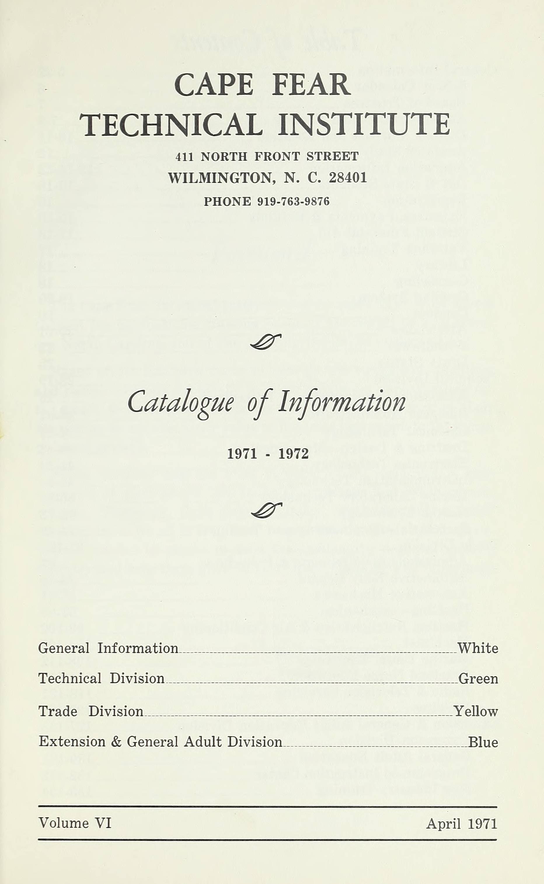 Cape Fear Technical Institute Catalogue [19711972]