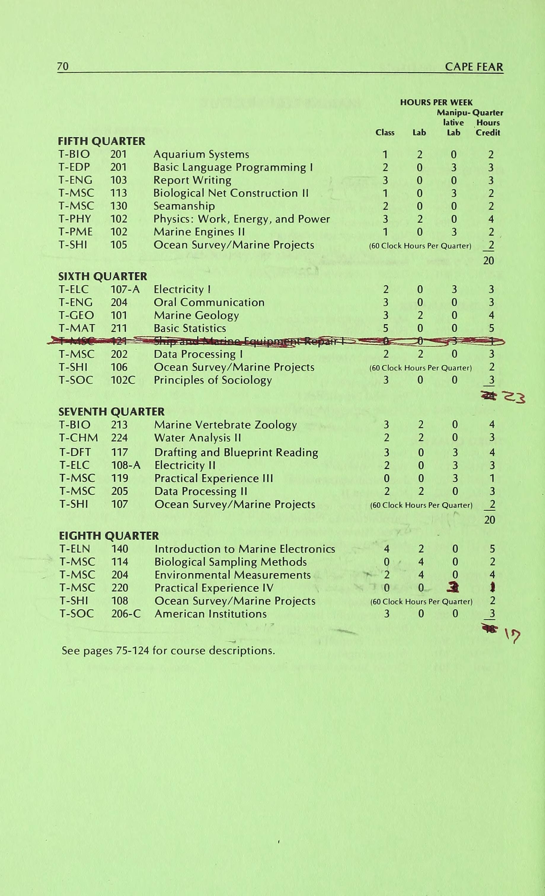 Cape Fear Course Catalog