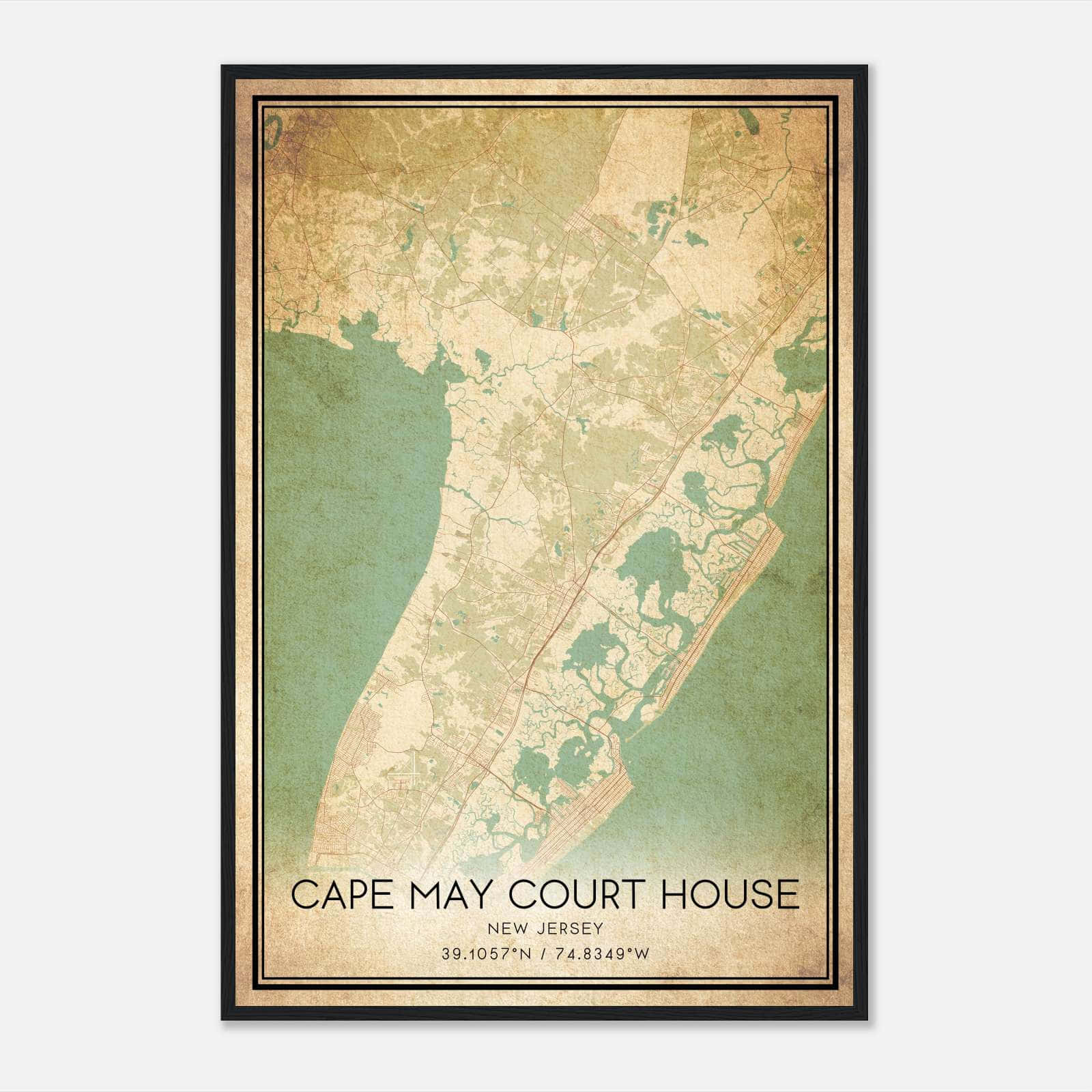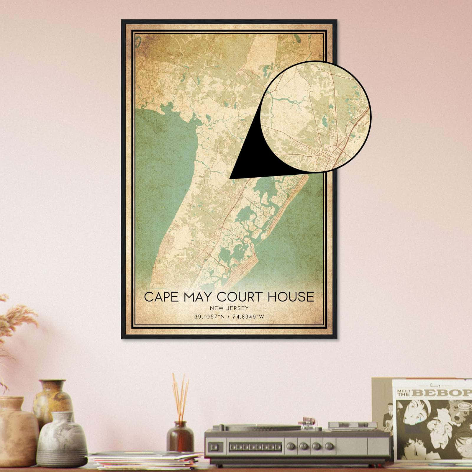 Vintage Cape May Court House New Jersey Map Poster, Cape May Court