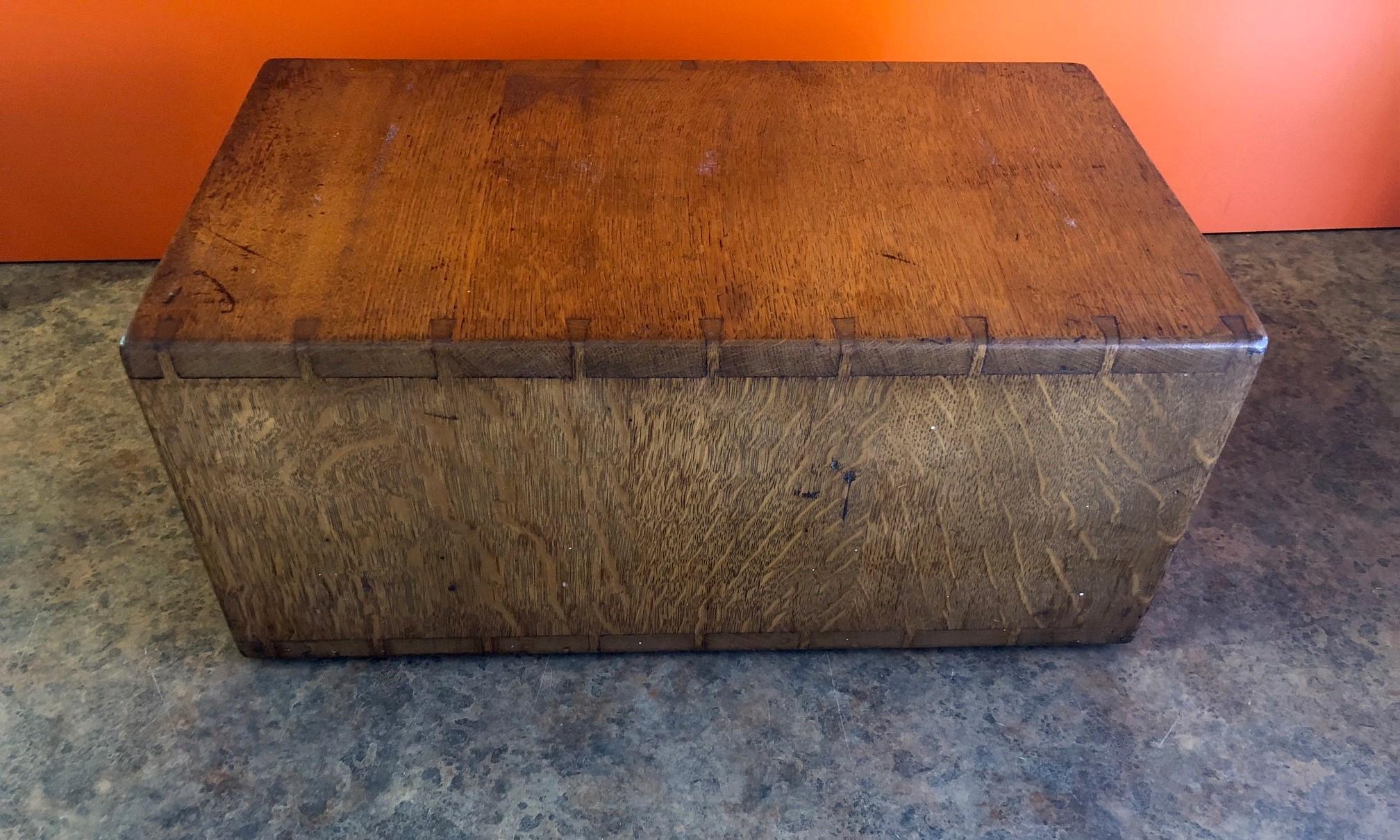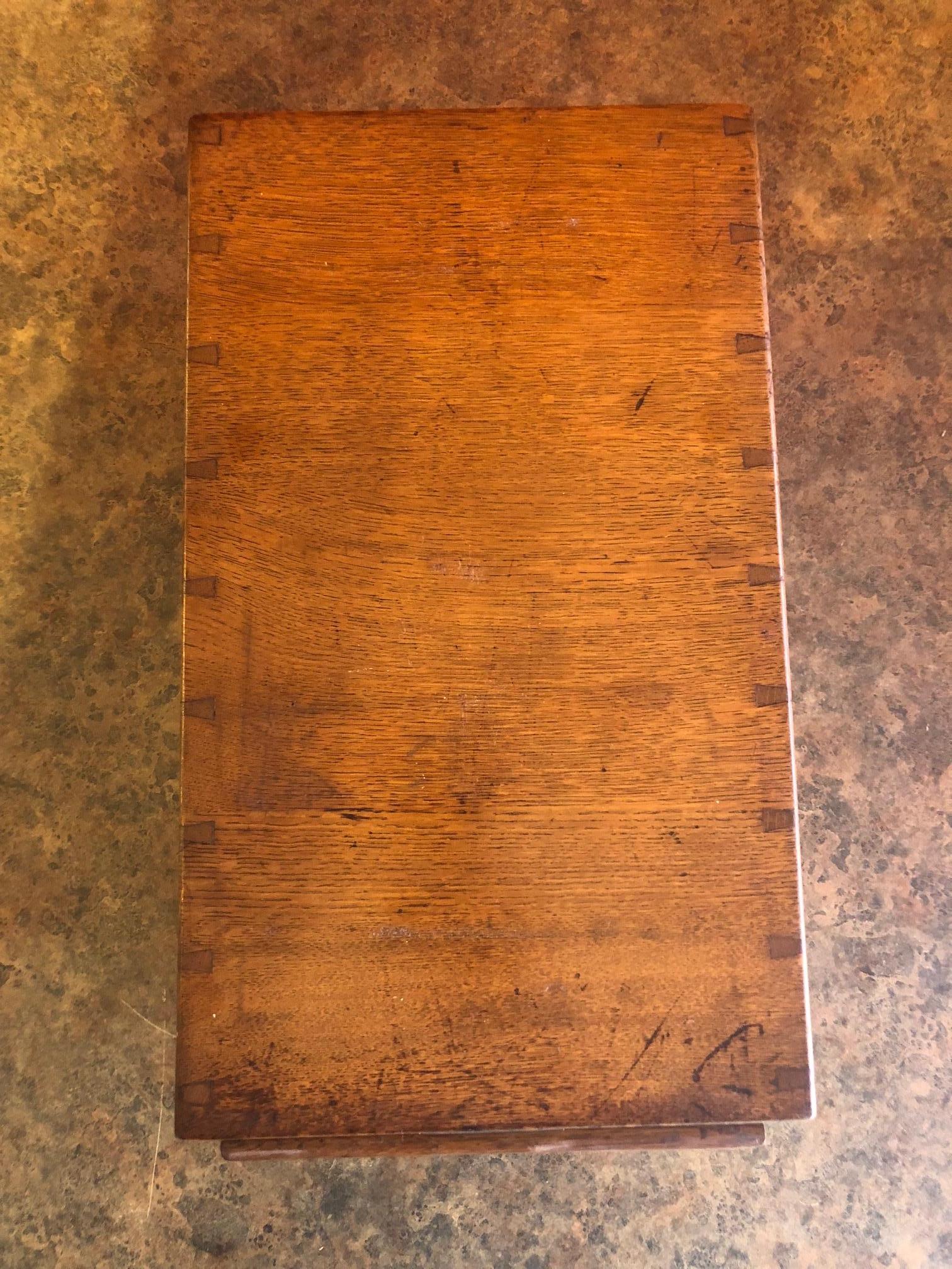 Solid Tiger Oak Card Catalog Box with Brass Handle Dovetail Art Deco