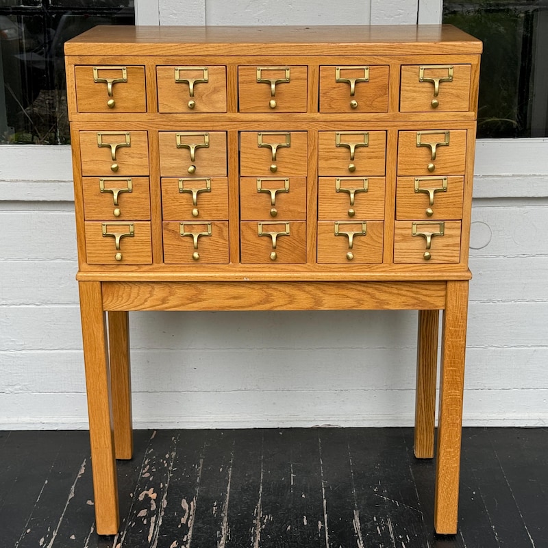 Vintage Oak 18Drawer Library Card Catalog or File with Book