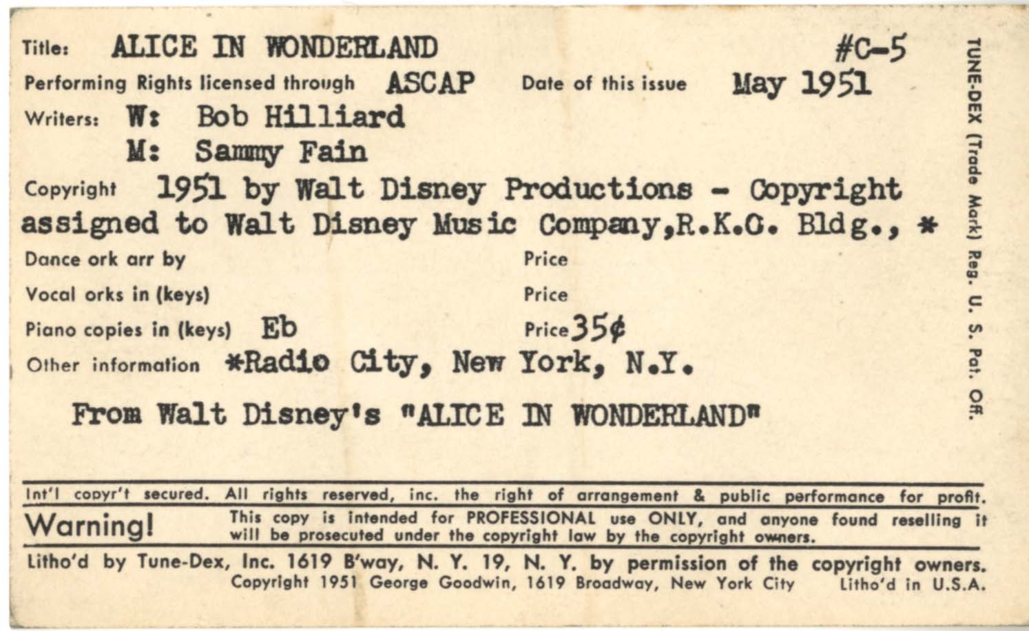 Vintage Disney Alice in Wonderland Alice in Wonderland TuneDex Cards