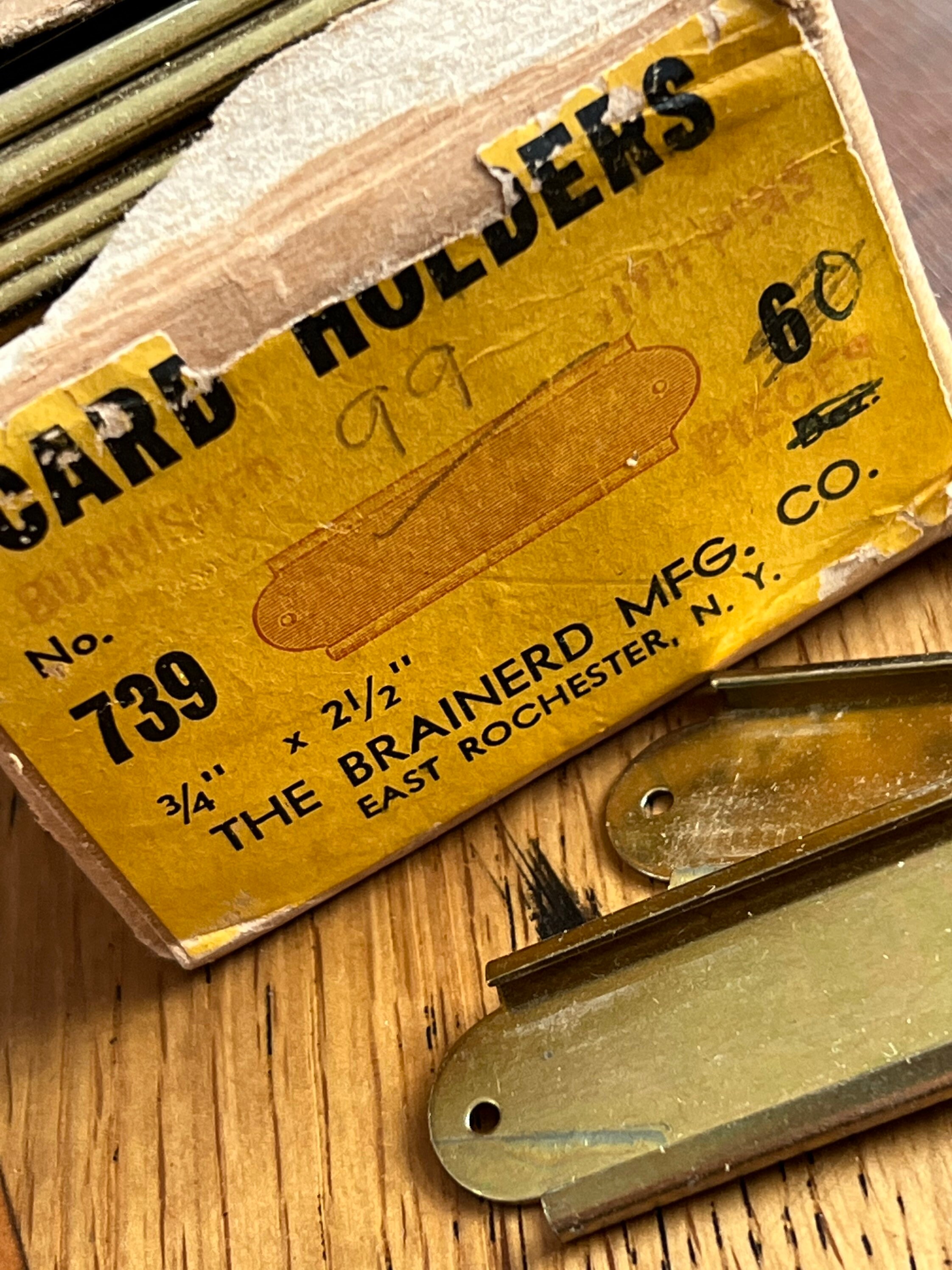 Vintage tarnished brass label holders for drawers antique drawer tag