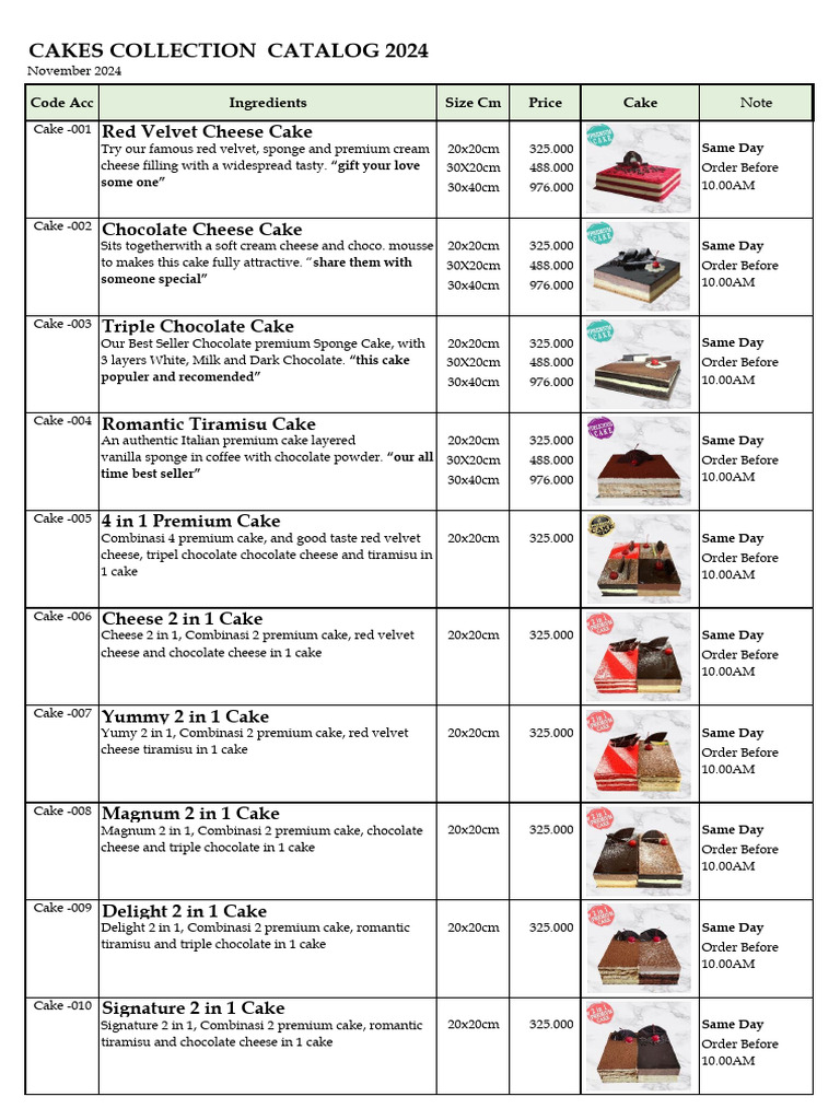 Price Catalogue Cakes Nov 2024 PDF Cakes Chocolate