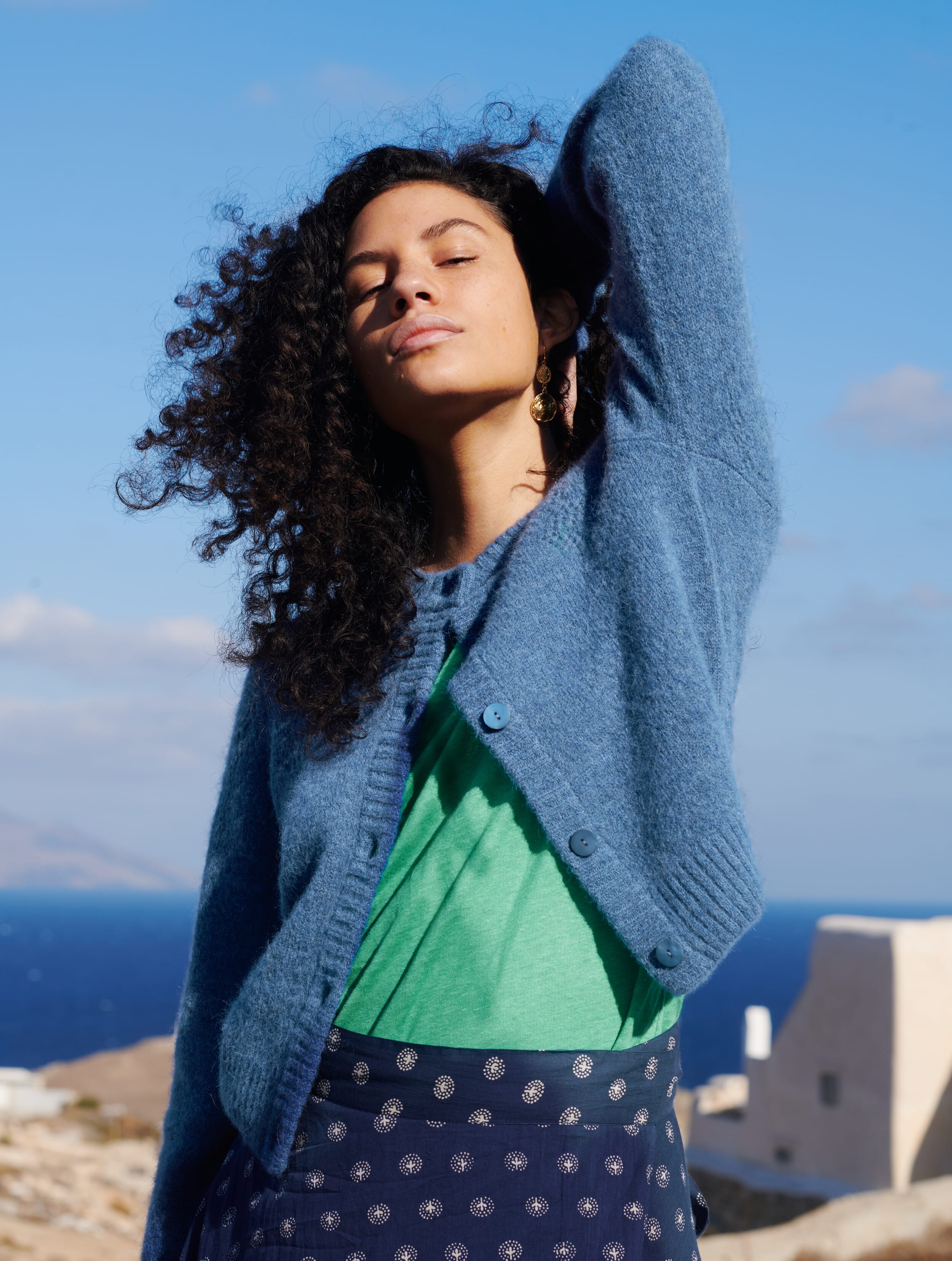Blue Alpaca Cropped Cardigan Women's Cardigans Brora Fashion