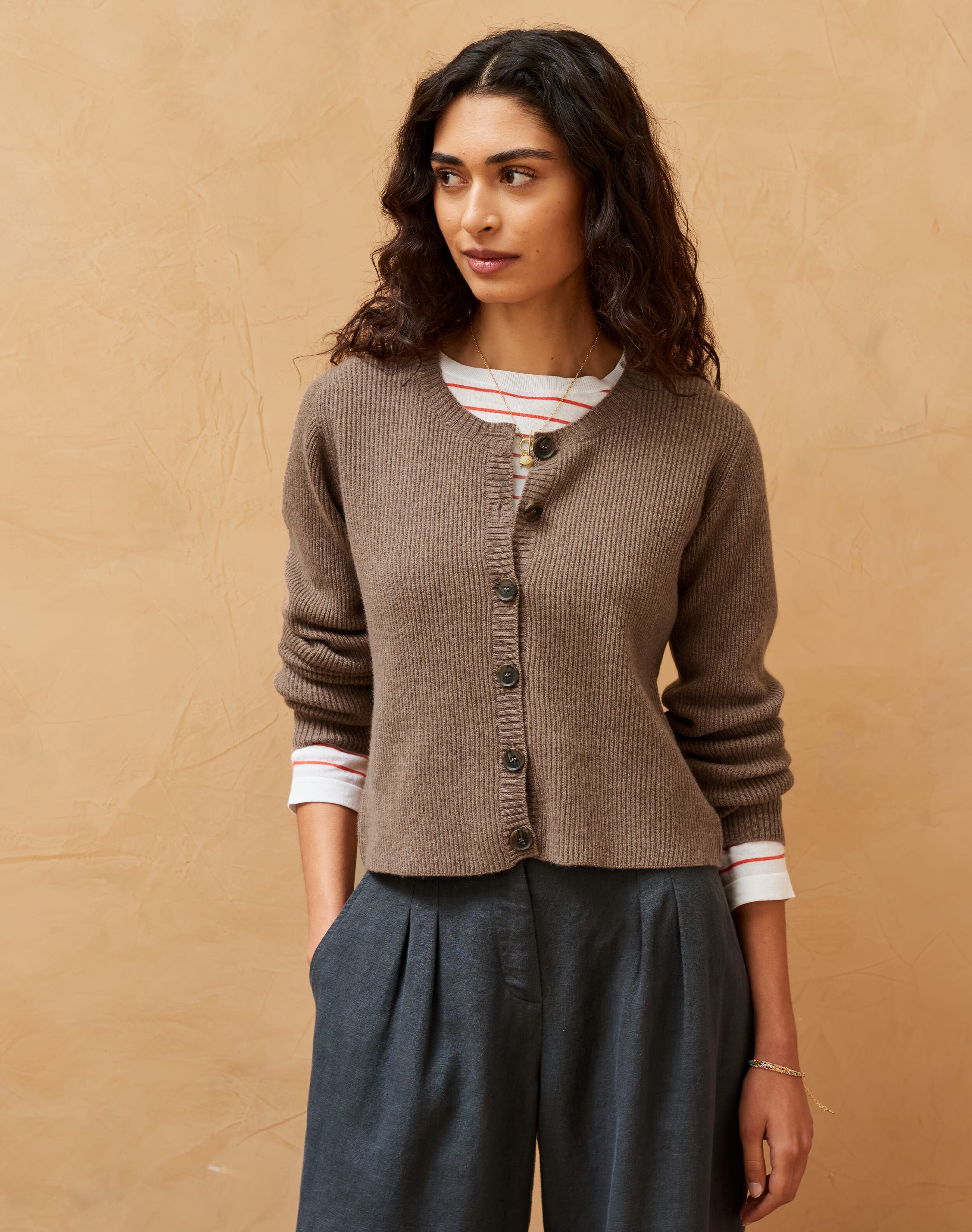 Walnut Cashmere Ribbed Cardigan Women's Cardigans Brora Fashion