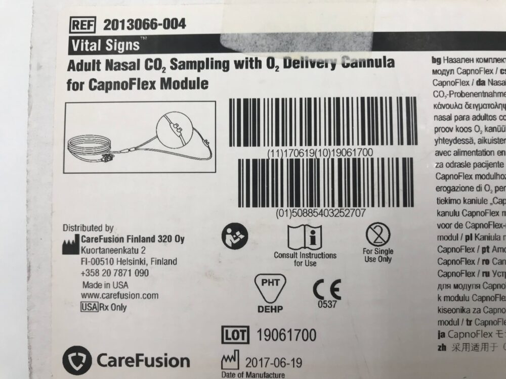 CareFusion 2013066004 Vital Signs Adult Nasal CO2 Samling W/O2 Depliv