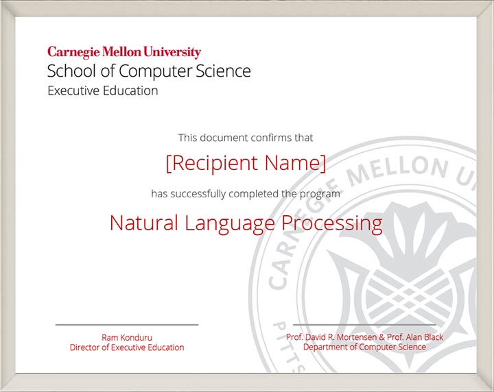 Carnegie Mellon University Master of Science in Computer Science 2020