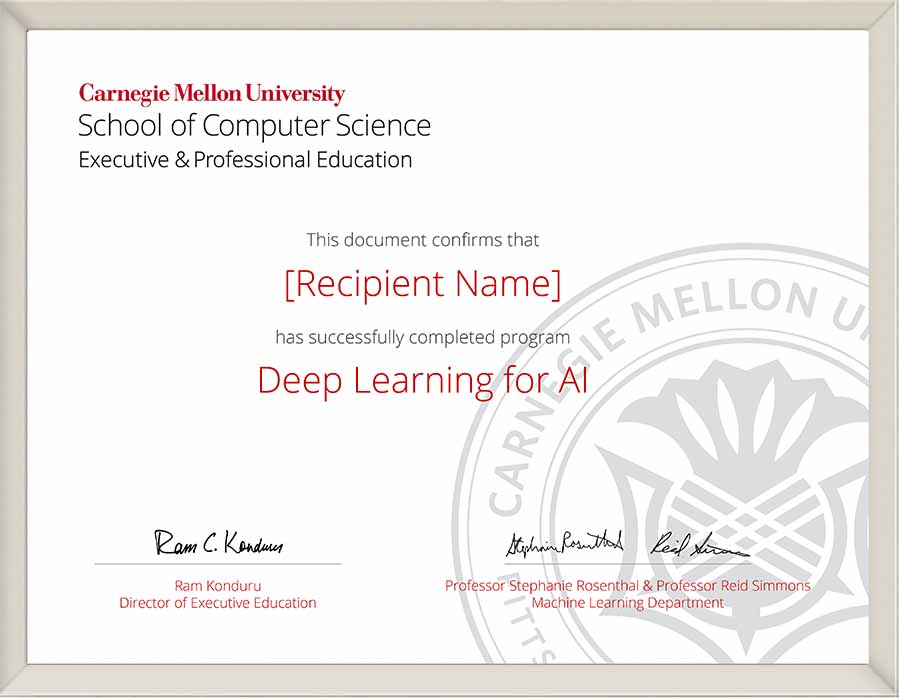 Deep Learning Online Course at Carnegie Mellon University SCS Exec Ed