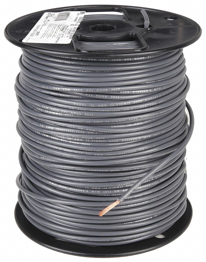 CAROL, 12 AWG Conductor Size, Gray, Hookup Wire 1YRE976822.R8.10